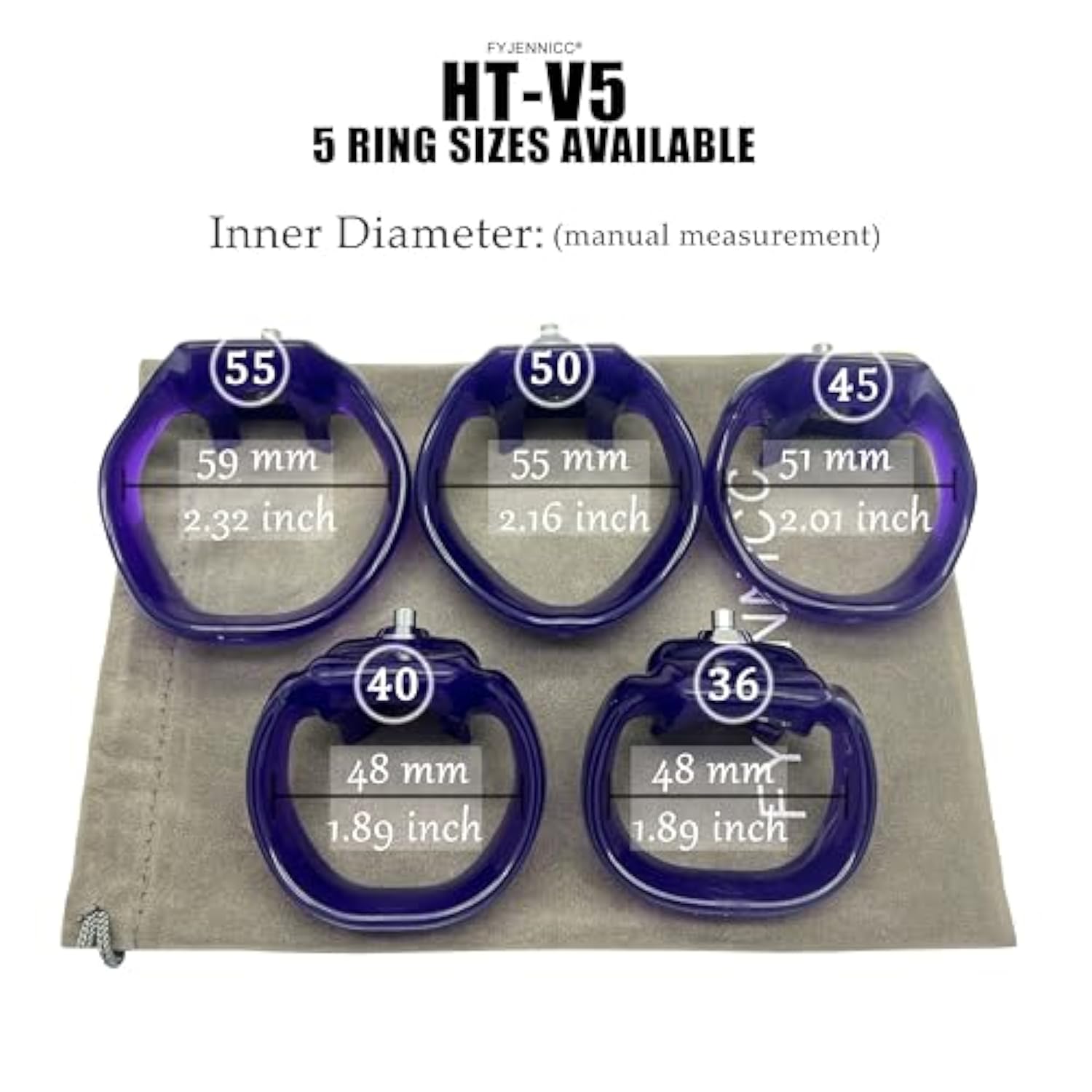 | Only Ring From - The Separate Ring Can Only Compatible With 'S Chastity Device Ht-V5. | | Skin-Friendly Material- The Resin Material Is Hypoallergenic And Safe?Allow Easy Cleaning And Maintenance?Surface Feel Smooth Against Skin?No Irritation Or Discomfort ?Resist Scratching Or Fading Over Time?Surface Remain Smooth After Extended Wear?No Any Special Maintenance Request. It Is Comfort For Extended Wear. | | An Innovative Design- The Ht-V5 Cage Design Allow Easy Urination Without Removal?Adequate Security And Restraint?Ventilation Effective For Preventing Odours?Allow For Discreet Use Under Clothing?It Is Discreet And Quiet, Minimizing Unwanted Noise Or Visibility. | | Clicklocked Key- It Comes With A Clicklocked Key, Sturdy And Durable Lock Mechanism?Ensure Secure Containment. It Is Difficult To Escape From Without A Key. | | Five Different Ring Sizes- It Comes Multiple Size Rings For A Snug Fit,With 5 Different Ring Sizes Allow Users To Choose The One That Suits Them Best.The Diameters Available Of 5Rings Are 48Mm (1.89Inch), 48Mm (1.89Inch), 51Mm (2.01Inch), 55Mm (2.16Inch), 59Mm (2.32Inch). | | Replacement Parts- Replacement Key, Tube, Ring Readily Available For This Product,Replacement Parts Available For Long-Term Use. | | Private Package- All Items Are Accompanied By Flannel Bags And Packaged Privately With Discreet . Package Includes: 1 Ring(No Tube), 2Key, 1Flannel Bags. | |