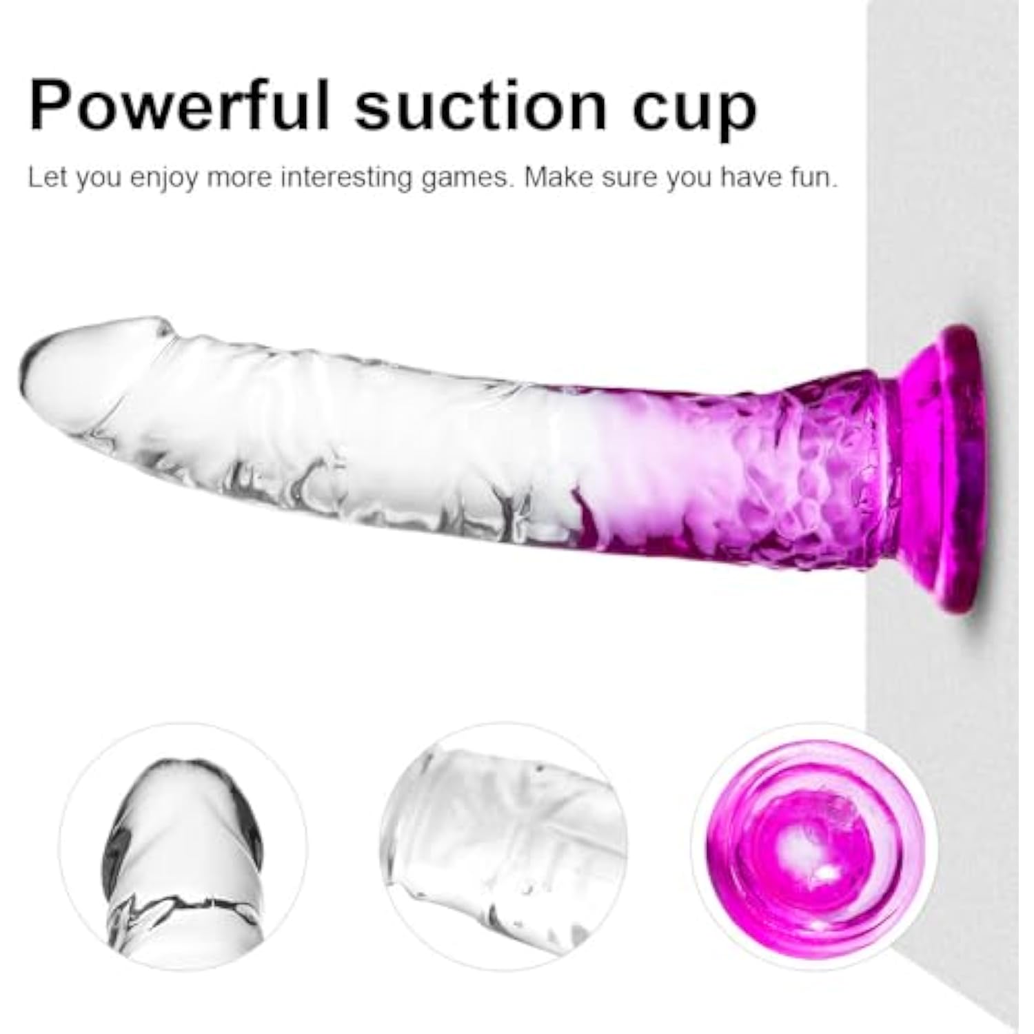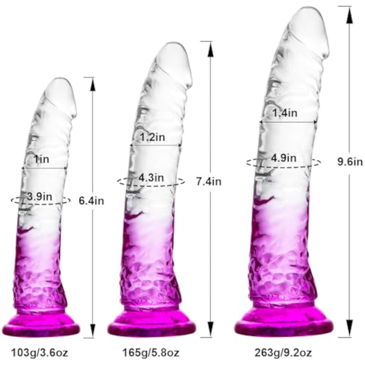 Clear Purple Combination Suction Cup Dildo - 3 Sizes Realistic Dildo(6.4''Small, 7.4''Medium,9.6''Large), Eggless,Perfect For Anal And Vaginal Pleasure Realistic Penis For Beginners To Advanced Users