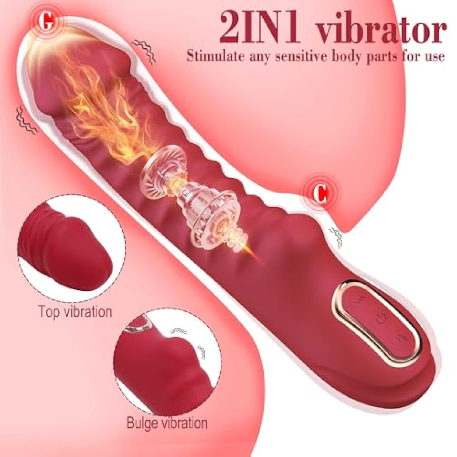 Clitoral G-Spot Powerful Vibrator, Waterproof Dildo Clit Stimulator With Multiple Vibration Modes, Softer And Flexible Sex Toy For Women (Burgundy Red)
