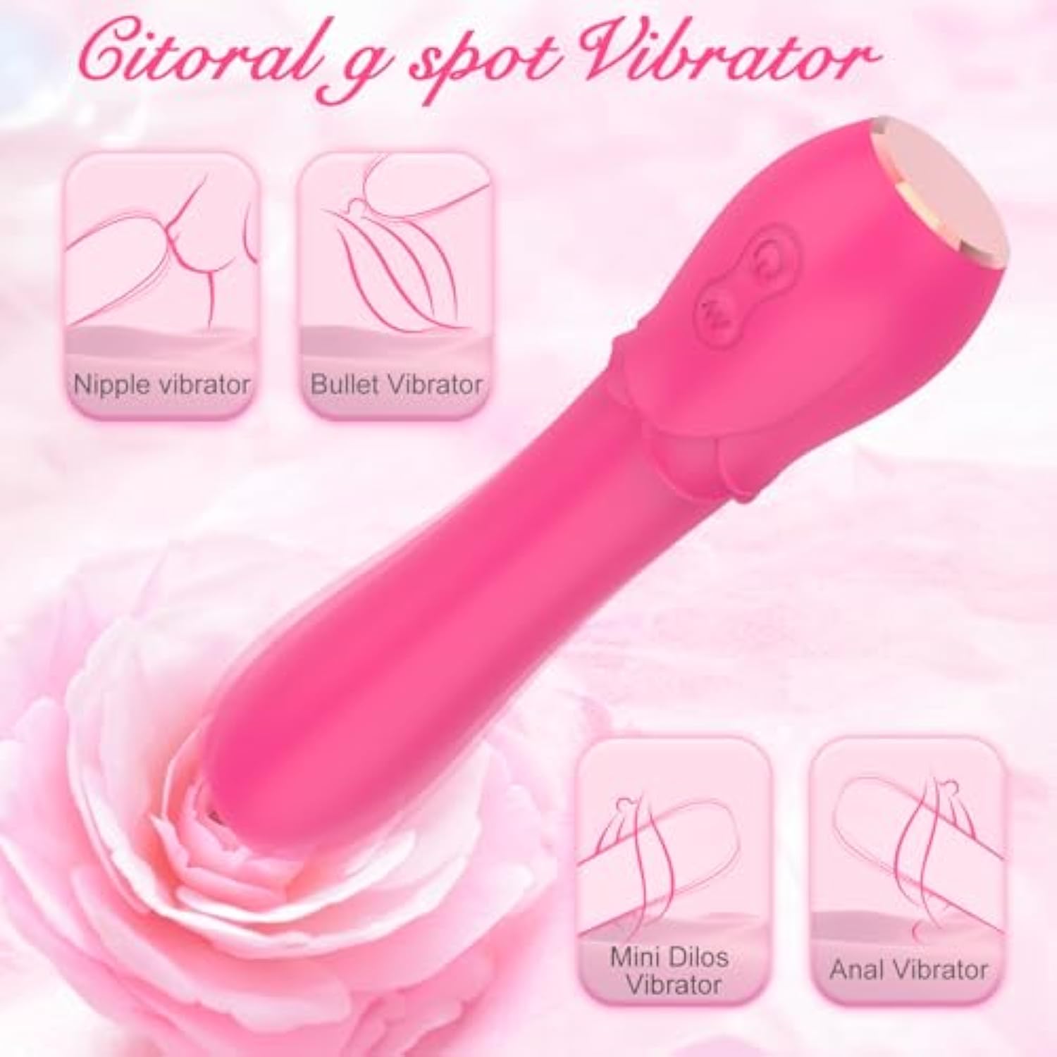 Clitoral G Spot Vibrator With 8 Vibration Modes, Powerful Soft Silicone Dildo Massager Vibrators For Anal Stimulation, Rose Sex Toys For Women
