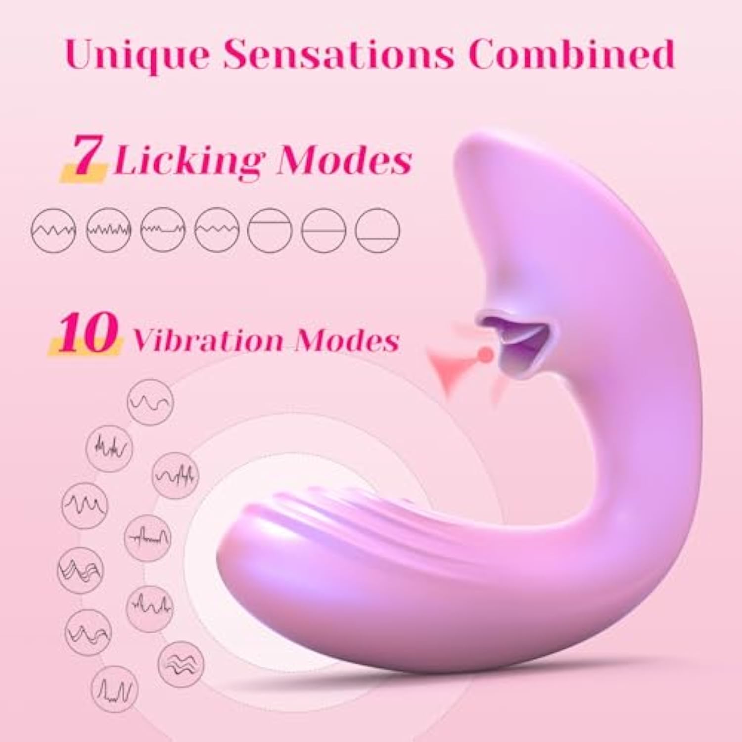 Clitoral Licking G Spot Vibrator, Remote Control Adult Toys For Women Couple Play, Vibrating Sex Toy For Double Stimulation With 7 Licking & 10 Vibration Patterns