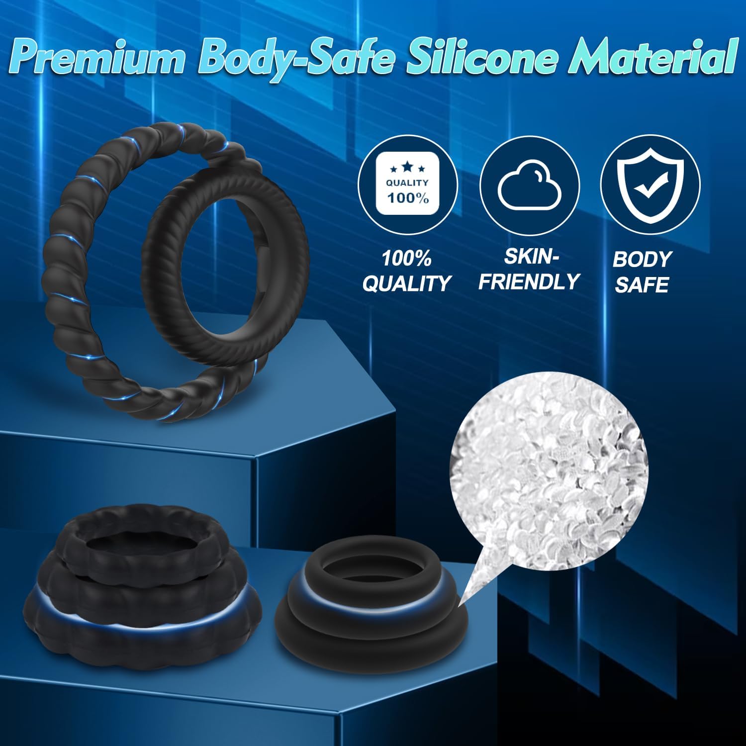 Premium Quality & Waterproof Design: Crafted from high-quality silicone, this cock ring set is soft to the touch yet sturdy enough for extended use. Its waterproof design makes cleaning easy and allows for fun in the shower or bath.