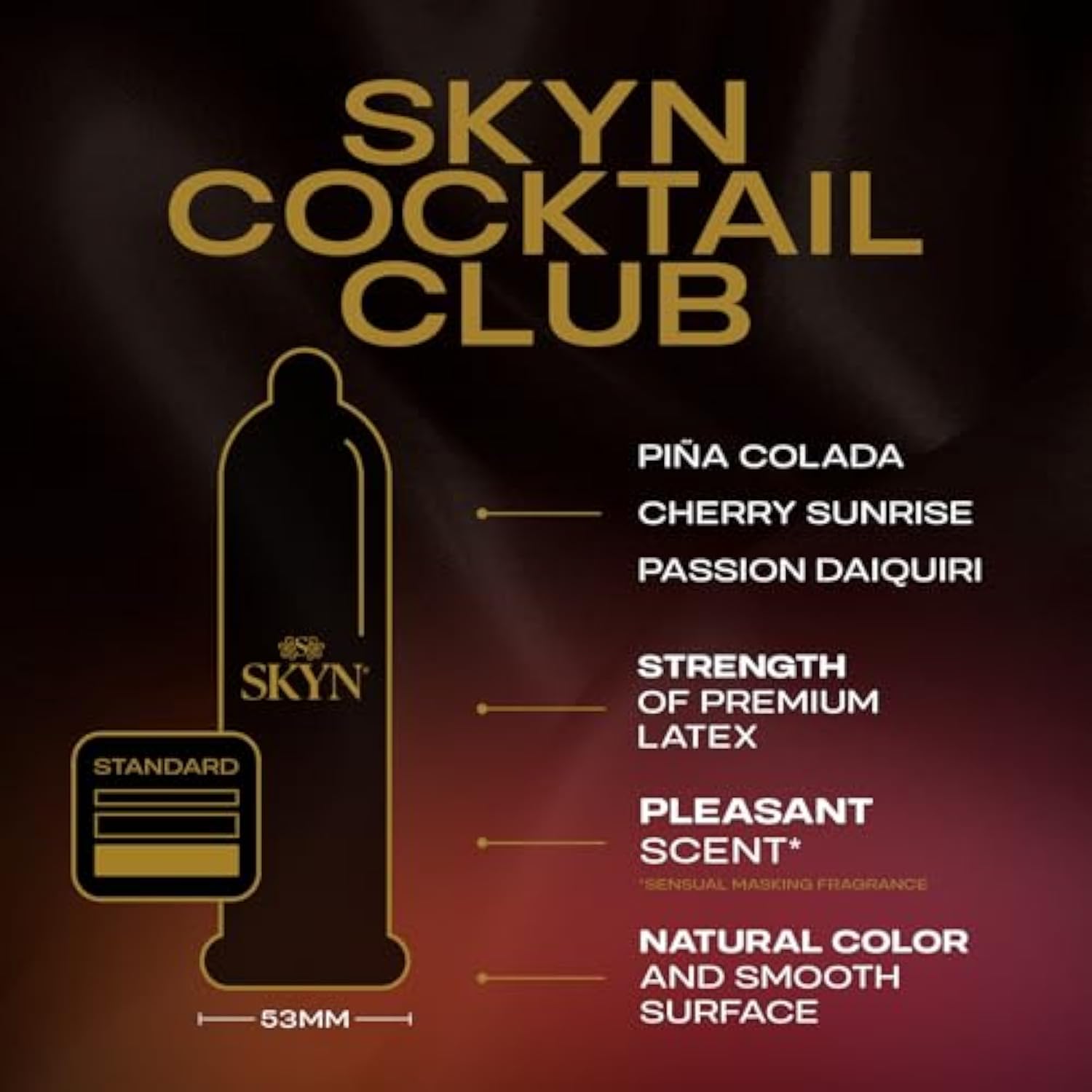 Scented And Flavored Condoms: Indulge In The Exotic Flavors Of Piña Colada, Cherry Sunrise, And Passion Daiquiri Flavored Condoms Designed With A Long-Lasting Lubricant For An Intoxicatingly Delightful Sensory Experience | | Unparalleled Comfort: These Latex-Free Condoms Are Made From Feel Technology, A Revolutionary Polyisoprene Material That'S So Soft And Comfortable, It Almost Feels Like Wearing Nothing | | Highest-Quality Standards: Condoms Are Rigorously Tested To Meet The Highest Standards To Offer The Ultimate Sexual Wellness Protection Against Unwanted Pregnancy And Stis | | Find Your Style: Features 4 Unique Lines, Including Original, Elite, Excitation And Extra Lube To Meet All Your Needs; Pair Them With Our Line Of Personal Lubricants For A More Comfortable Experience | | A Condom For Every Moment: Condom Use Doesn’T Have To Just Be About Protection, They Can Do A Lot More; Choosing The Right Condom Can Bring You And Your Partner Closer, And Enhance Your Experience Without Worry | |