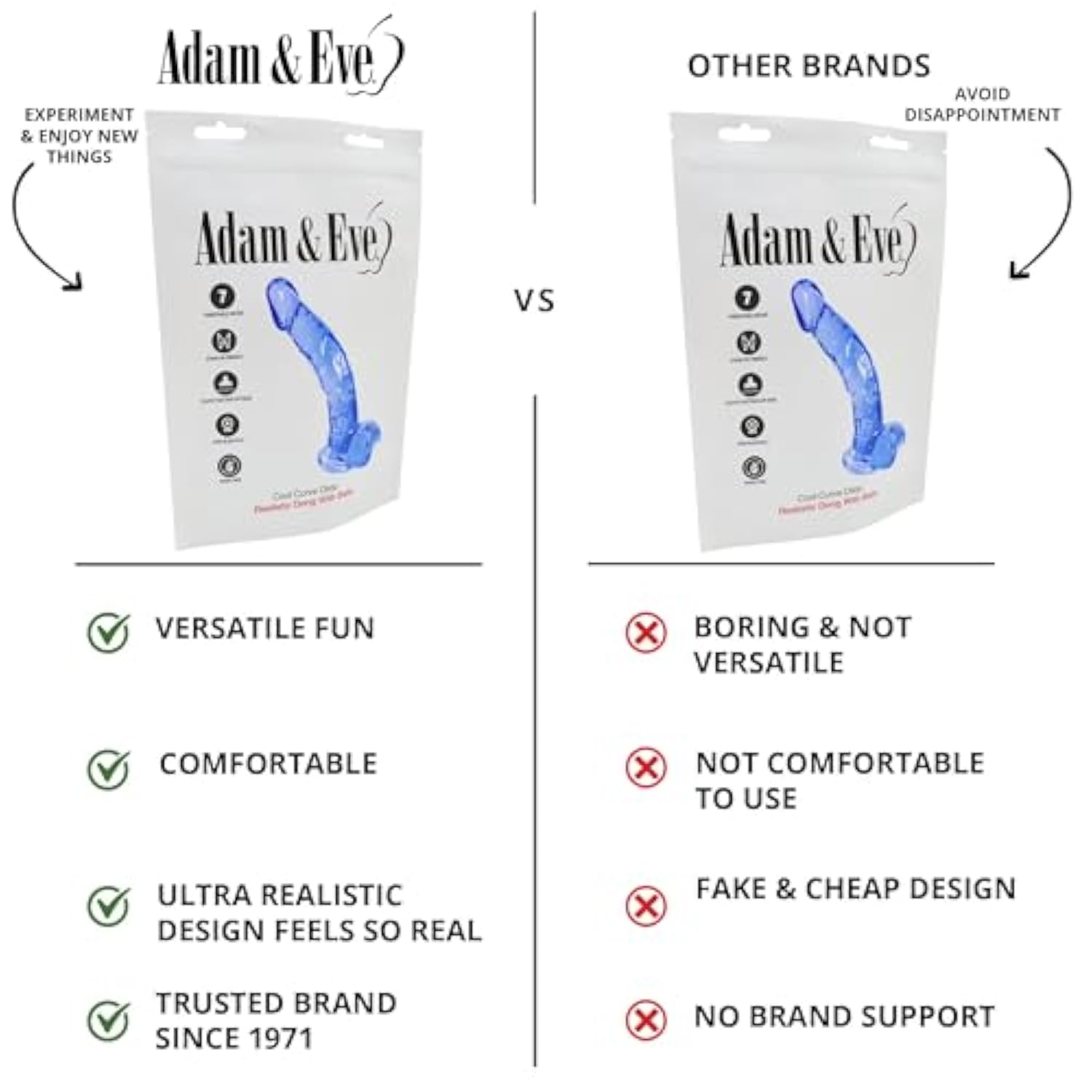| Realistic Curved Dildo For Intense Pleasure: Experience Deep, Satisfying G-Spot Or P-Spot Stimulation With Adam Eve’S Cool Curve Jelly Dildo. Its Lifelike Details, Including A Pronounced Head And Textured Veins, Enhance Pleasure With Every Inch For An Ultra-Realistic Experience | | Firm Yet Flexible Design For Maximum Comfort: Made From Body-Safe Pvc, This Dildo’S Firm Core Provides Stability While The Flexible Shaft Moves With Your Body. Its Smooth, Curved Shape Ensures Easy Insertion And Direct Stimulation To Your Most Sensitive Internal Pleasure Zones | | Strong Suction Cup Base For Hands-Free Play: Stick The Powerful Suction Cup To Any Hard Surface For Hands-Free Solo Sessions. Perfect For Use In The Shower, Against A Wall, Or On A Sturdy Chair, This Dildo Stays In Place, Letting You Ride Your Way To Full Satisfaction | | Strap-On Harness Compatible For Couples Fun: This Versatile Dildo Fits Most Strap-On Harnesses, Making It Ideal For Partner Play. Whether You Use It Solo Or With A Partner, Its Curved Shaft And Realistic Design Ensure A Thrilling And Fulfilling Experience Every Time | | Trusted Usa Brand Since 1971, Adam Eve Is Committed To Providing High-Quality Lubricants And Superior