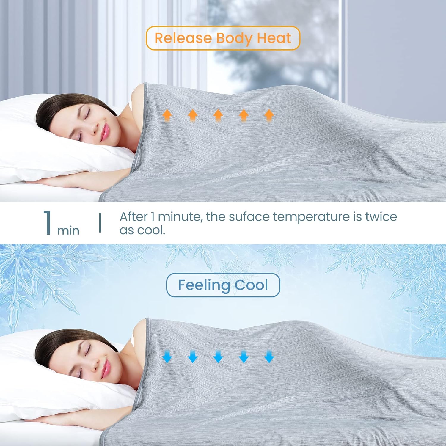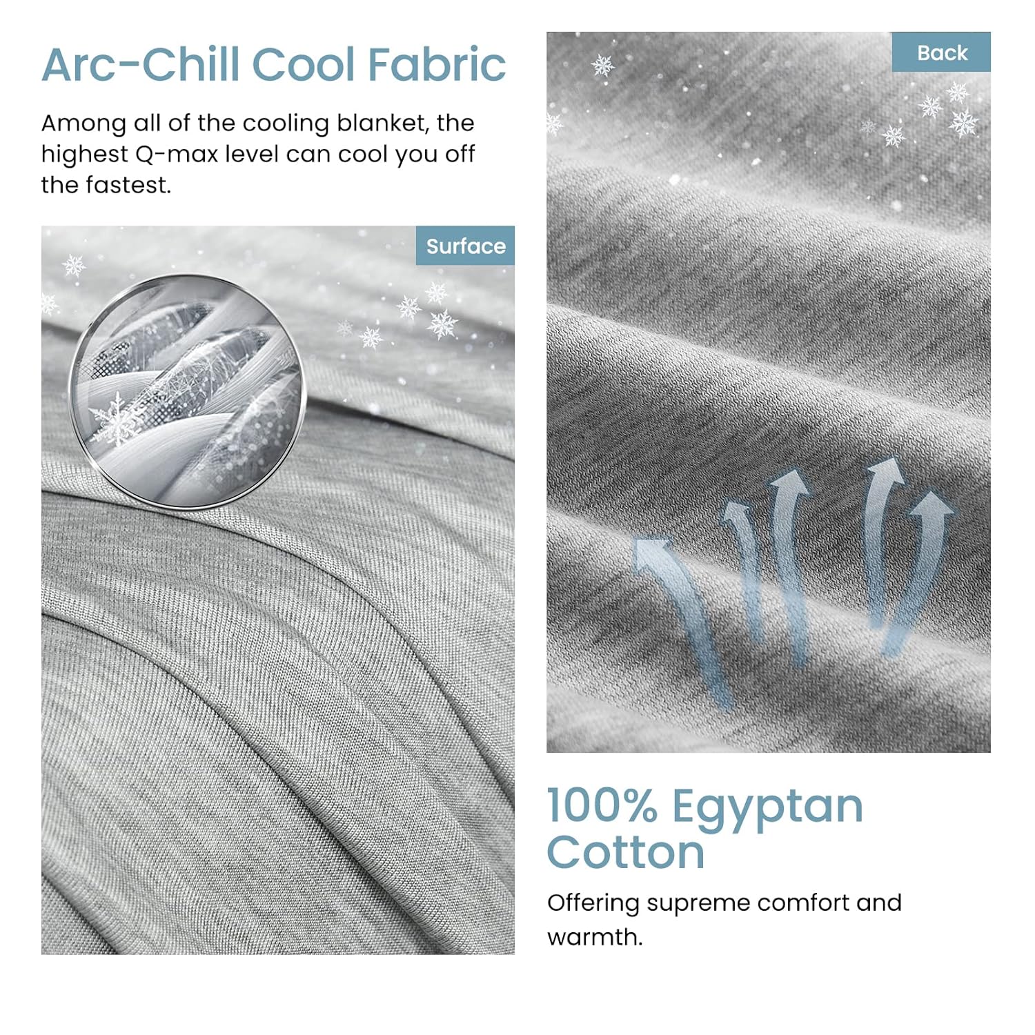 Cooling Throw Blanket, Japanese Q-Max>0.4 Arc-Chill Cooling Fiber Absorb Body Heat, 100% Cotton Backing, Summer Cool Blanket For Travel/Outdoor, Cold Blankets For Sleeping, Hypoallergic, Grey