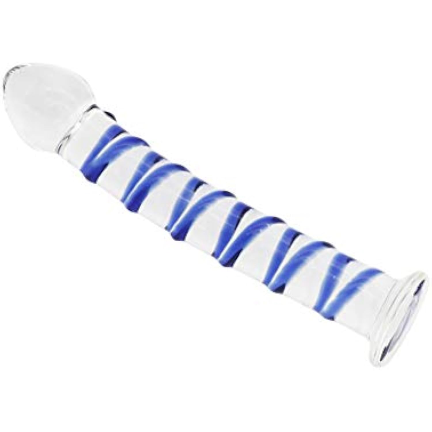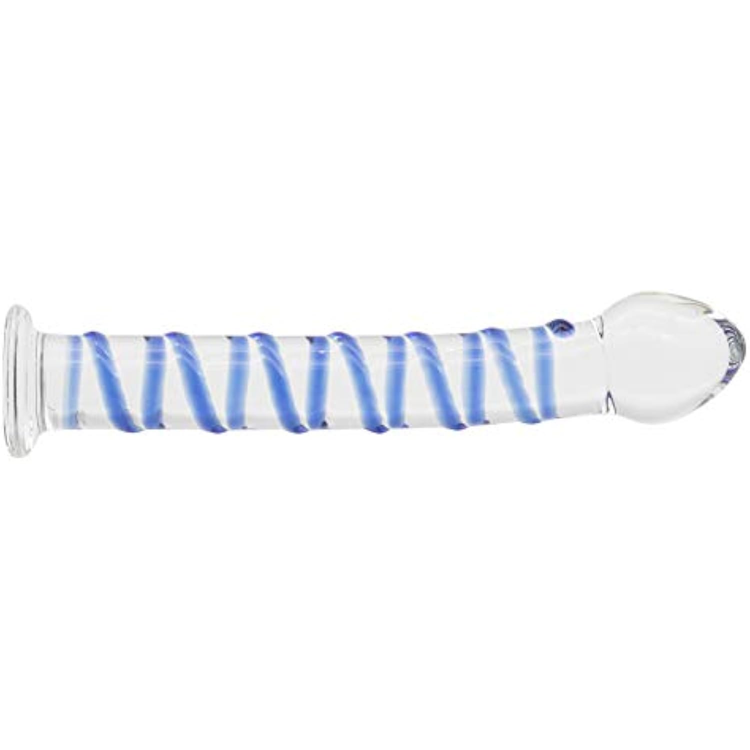 Crystal Glass Pleasure Wand Dildo Penis With Blue Raised Spiral Texture Mushroom Tip Anal Butt Plug