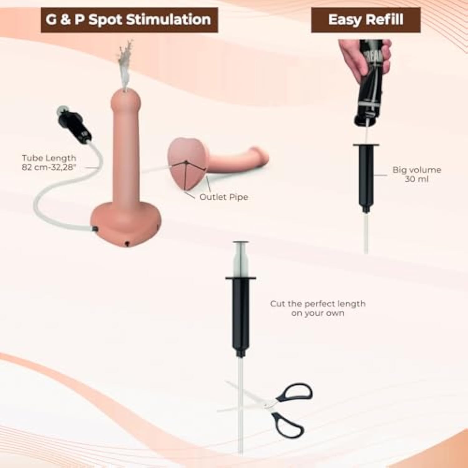 Cum Dildo - 30Ml Syringe, G&P Spot Stimulation, Ergonomic Design, Ultra-Soft & Flexible Silicone, 100% Waterproof, Easy To Clean - Premium Sex Toys For Strap On Use