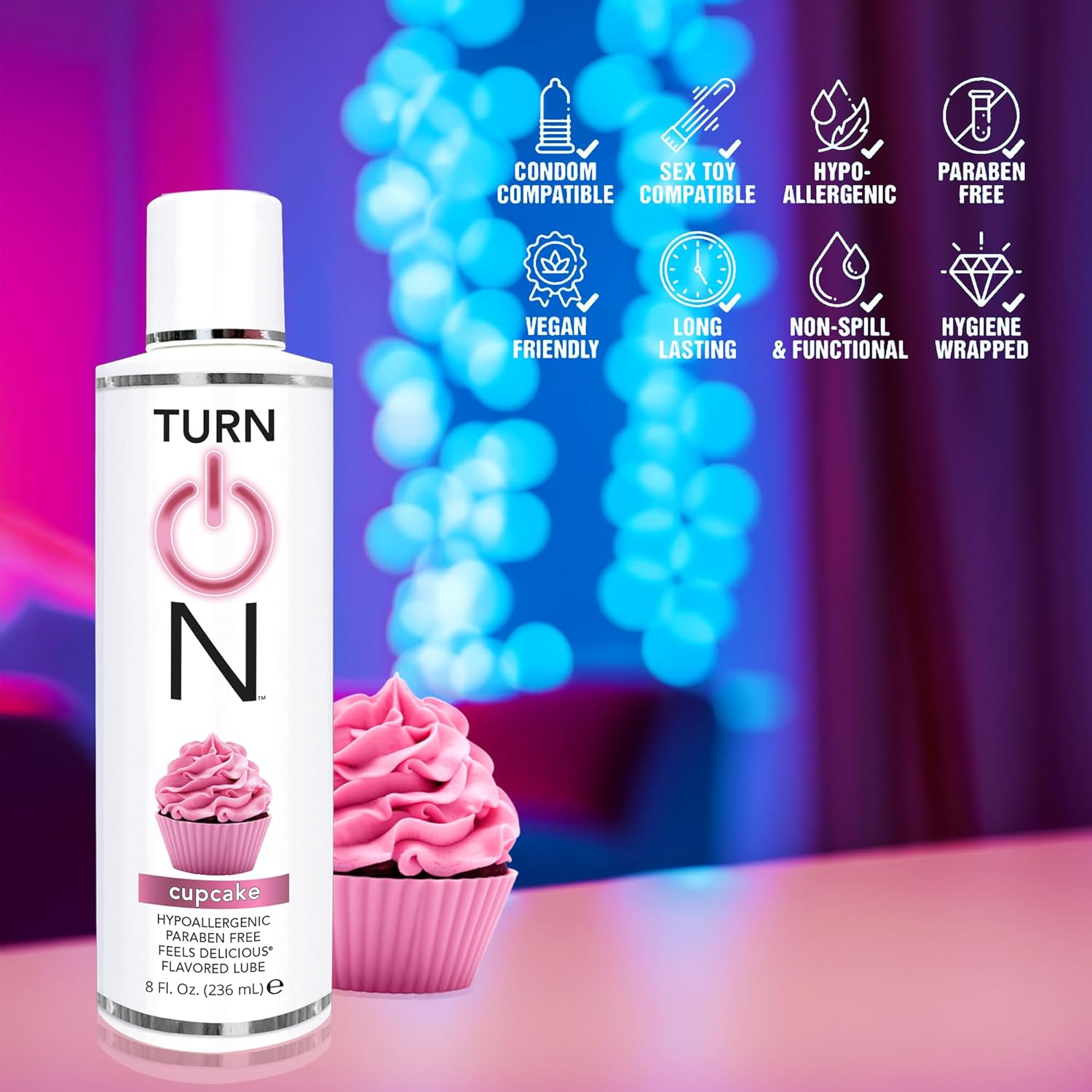 - SWEET TASTING AND SUGAR-FREE: Turn On Cupcake Flavored Personal Lubricant brings the delightful taste of cupcakes to your intimate moments, enhancing the experience with a familiar, sweet flavor. This product is perfect for adding a fun twist to personal activities, offering a lighthearted approach to intimacy.