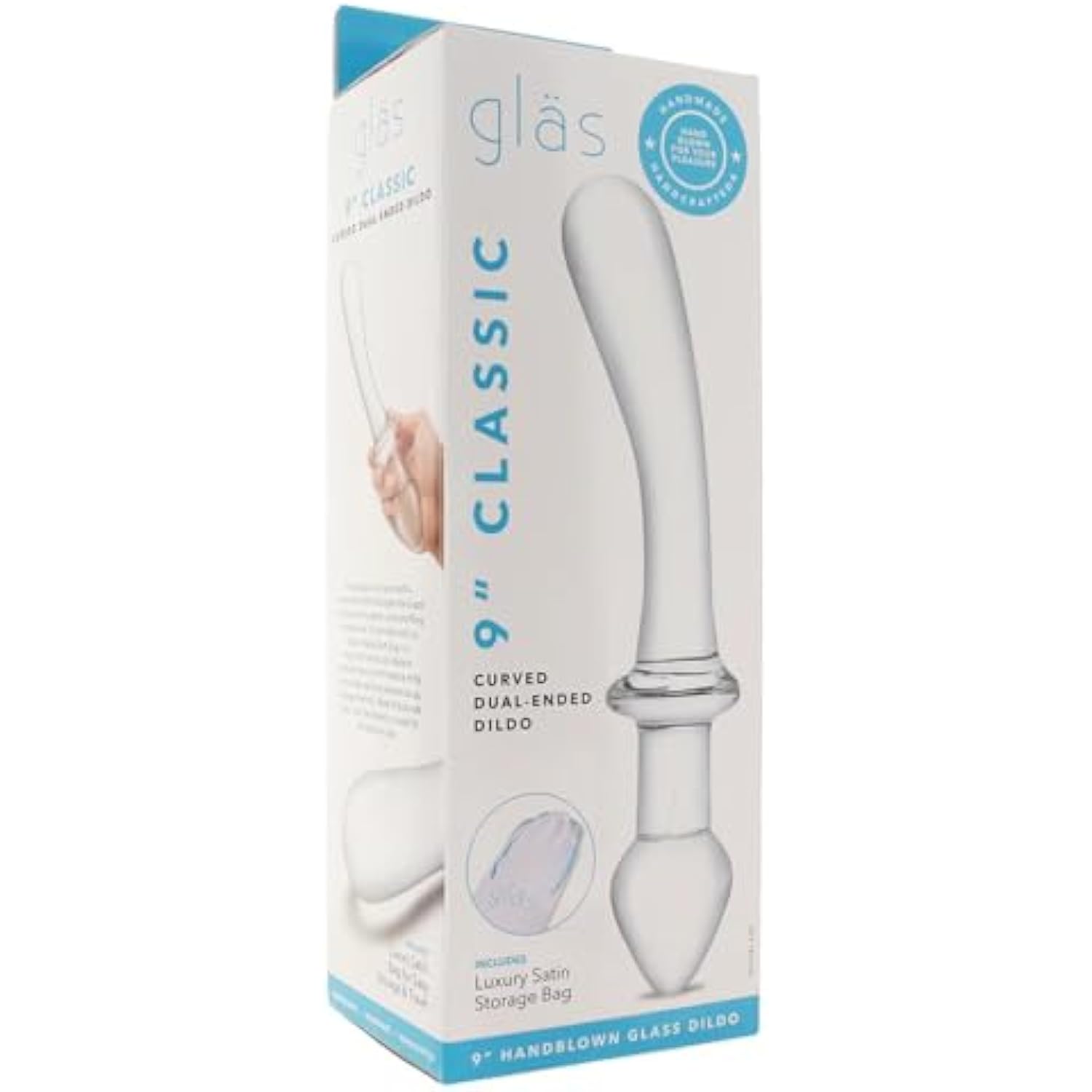 Curved 9 Inch Dual Ended Glass Dildo With Lube 1Oz | Double-Ended Dildo | Glass Dildos | Butt Plugs | G-Spot Massager