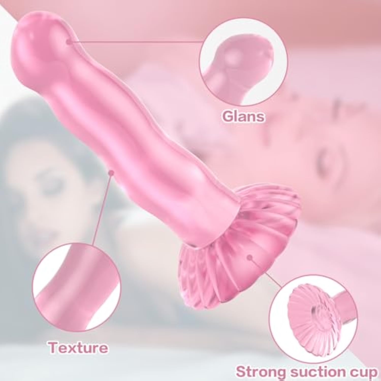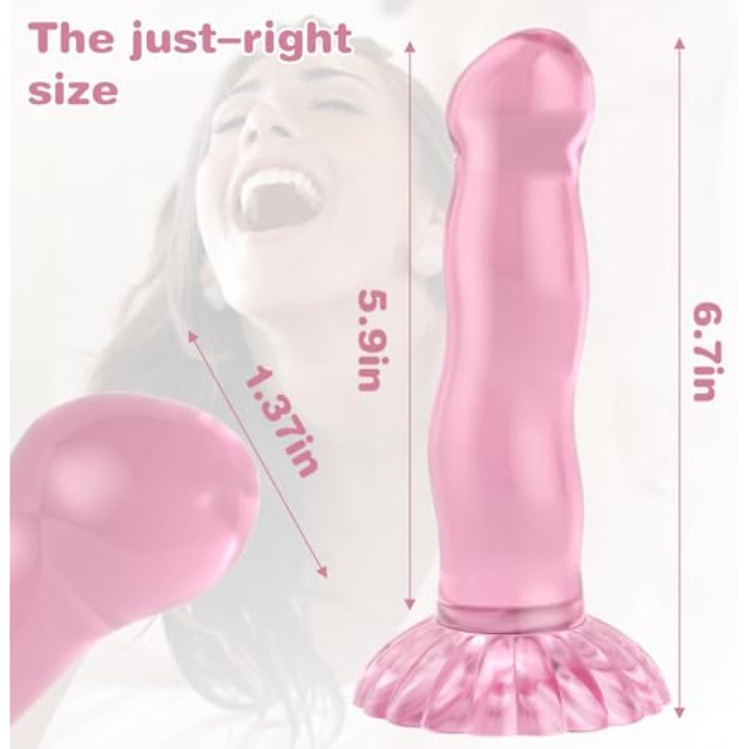 Cute Dildo Clear 6.7" Beginner Dildo With Strong Suction Cup Hand Free Play Flexible Soft Dong, Vaginal And Anal Stimulation Adult Sex G-Spot Dildos Toys For Adult- Pink