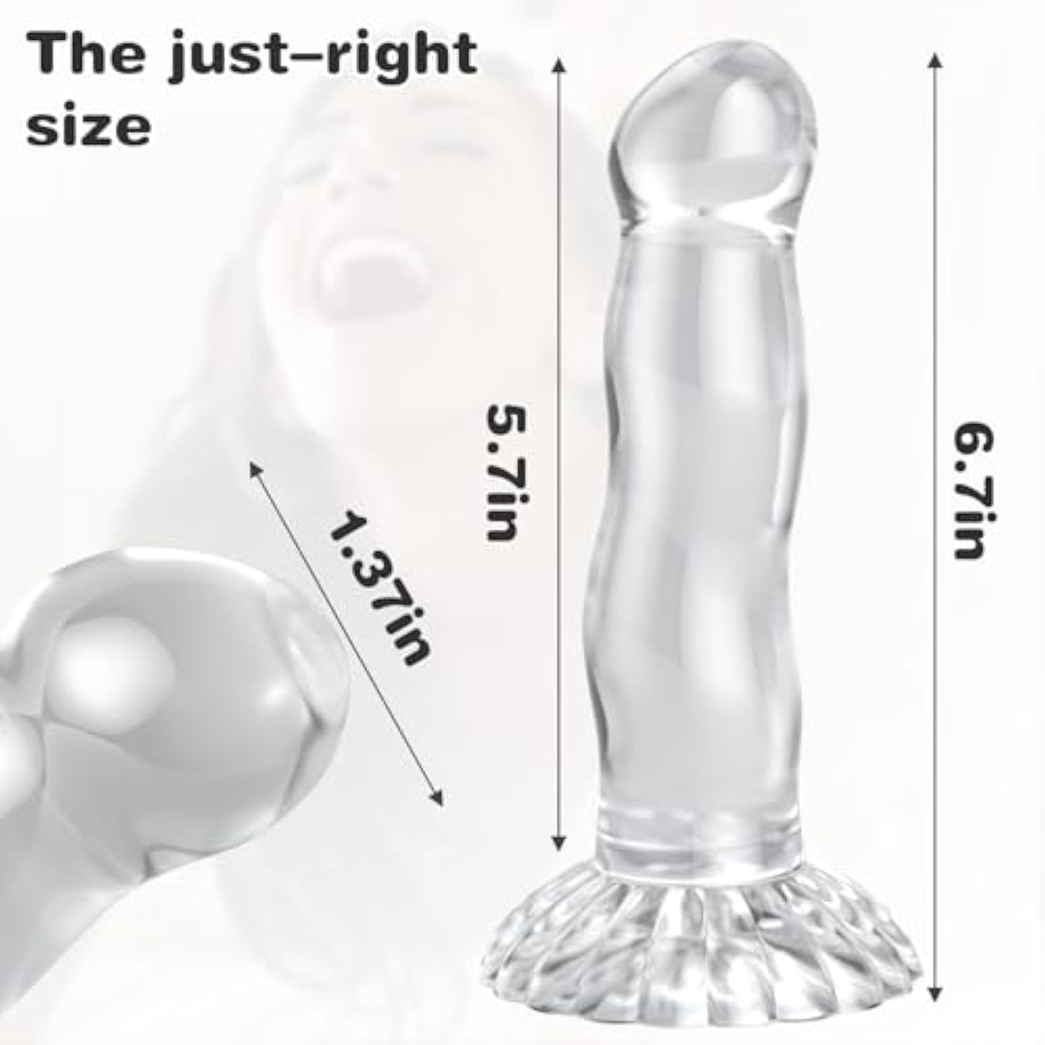 Cute Dildo Clear 6.7" Beginner Dildo With Strong Suction Cup Hand Free Play Flexible Soft Dong, Vaginal And Anal Stimulation Adult Sex G-Spot Dildos Toys For Adult- Transparent