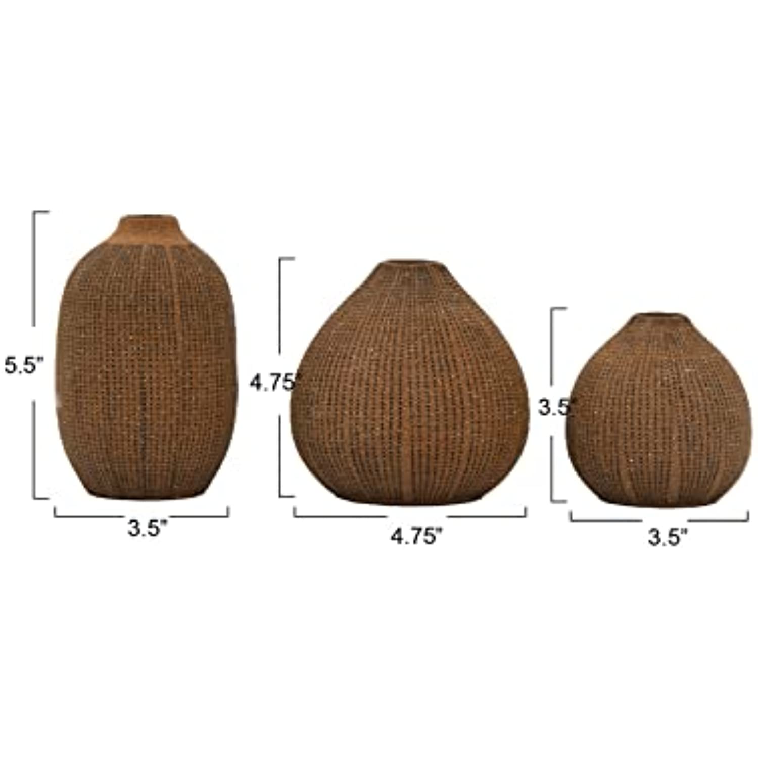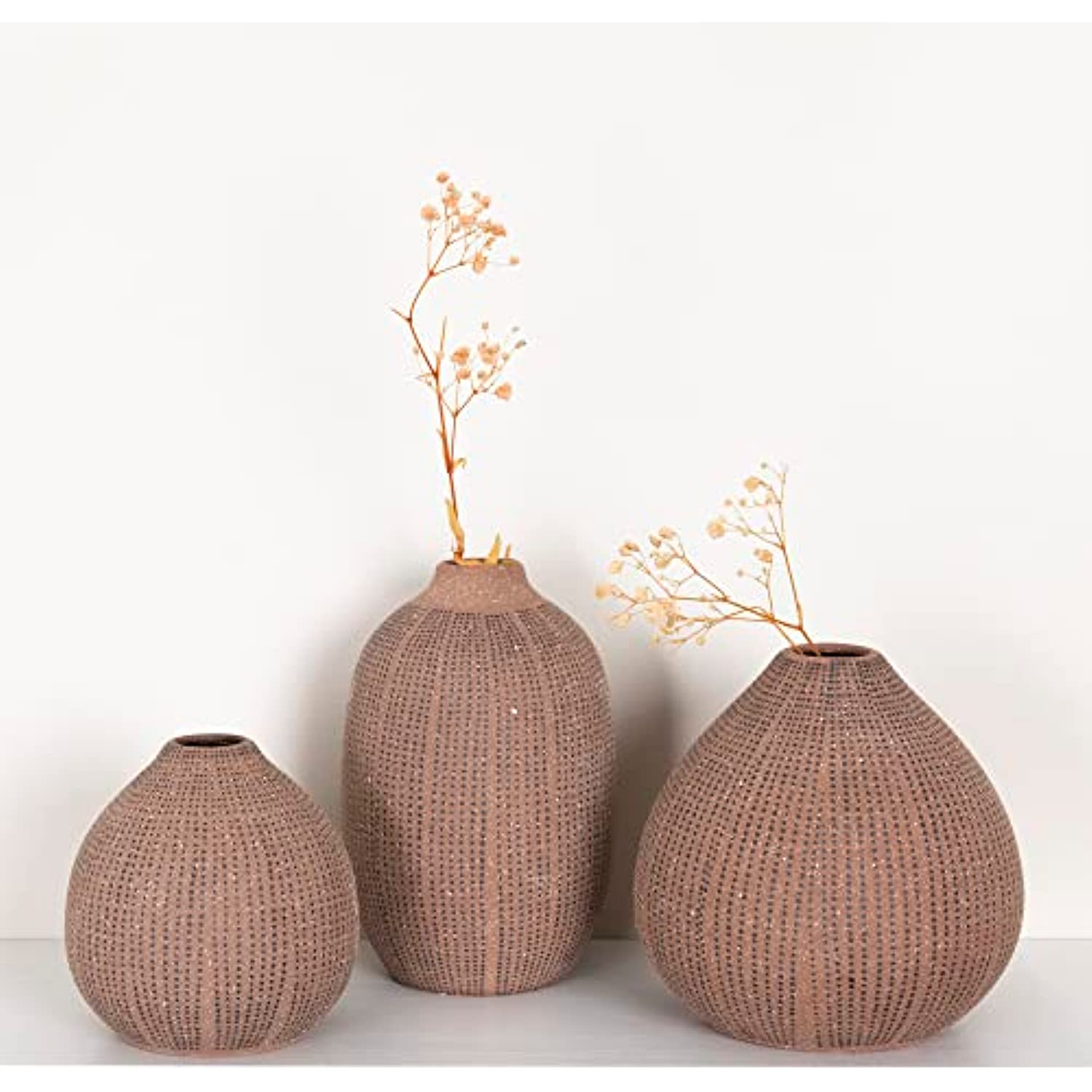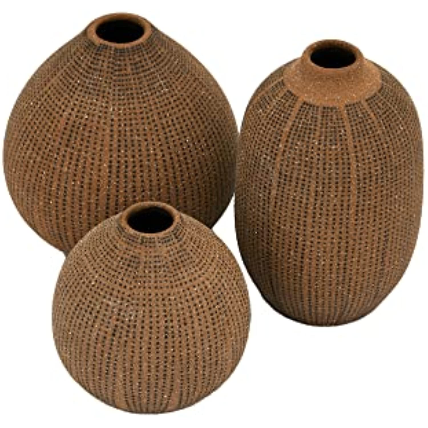 Decorative Textured Stoneware, Set of 3, Brown Vase Set