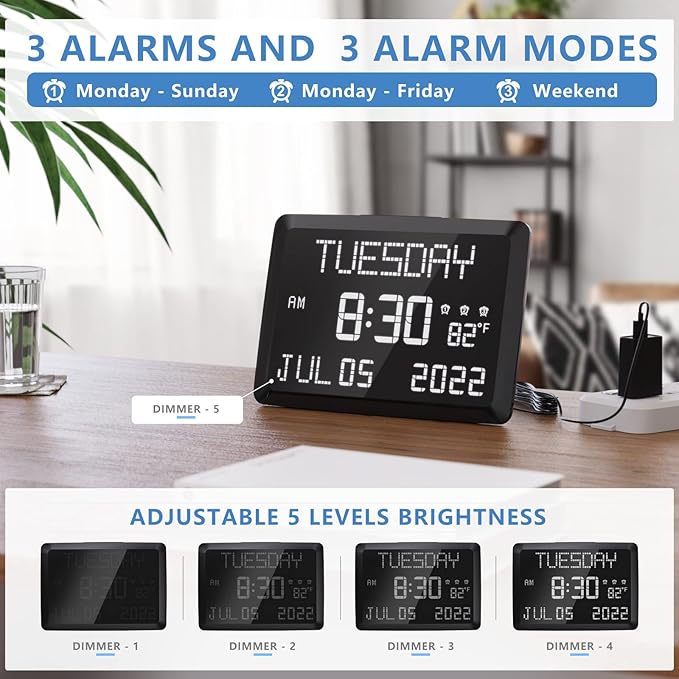 - BEST GIFT CHOICE - The day clock with large digital display is perfect gift for your family and friends.Meanwhile,it is also very beautiful to decorate your bedroom,living room and office.
