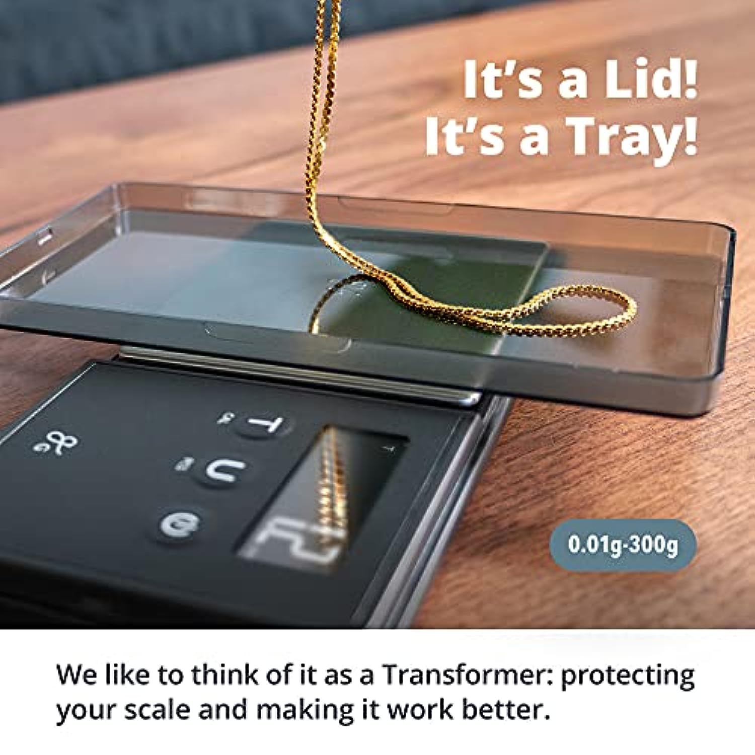 - Fresh Features: We always thinks about the little things. That’s why we made it so the pocket scale’s lid can double as a tray, and you can conveniently measure more items. Inherently pocket scales have absurdly small weighing platforms, but we solved that problem with a lid/tray that flips and doubles the amount of space you have for your objects.
