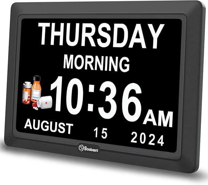 - ๐๐ฒ๐บ๐ฒ๐ป๐๐ถ๐ฎ ๐๐น๐ผ๐ฐ๐ธ ๐ญ๐ฎ ๐๐น๐ฎ๐ฟ๐บ๐ ๐ณ๐ผ๐ฟ ๐ฆ๐ฒ๐ป๐ถ๐ผ๐ฟ๐ ๐ ๐ฒ๐บ๐ผ๐ฟ๐ ๐๐ผ๐๐ - digital calendar day clock for senior has up to 12 sets of alarms, each alarm could be set as a reminder like a medicine reminder, meal reminder, shower reminder etc. When the alarm goes off, the clear colorful icon with specific words will also help your family member get rid of misunderstanding.