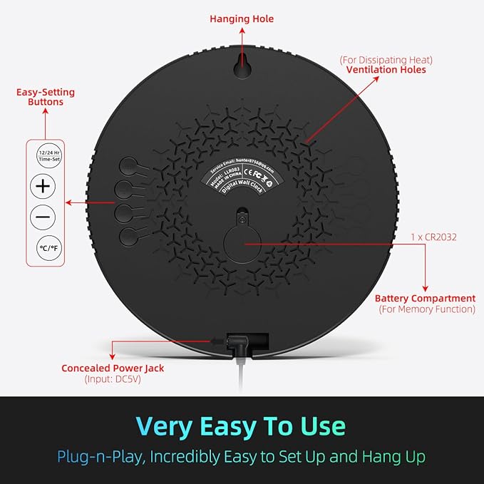 - VERY EASY TO USE: This PLUG-IN wall clock is extremely easy to set up and the 10Ft long USB Cable makes it possible for you to hang it wherever you want.