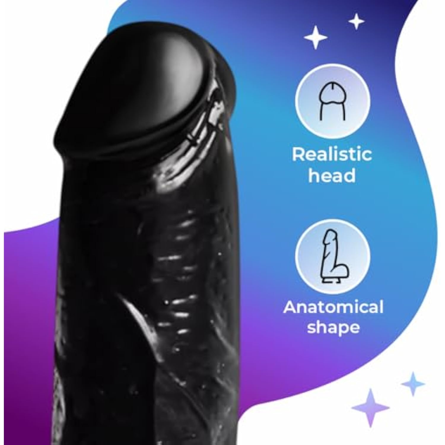 Dildo 8.3 Inch Realistic Silicone Dildo Adult Sex Toys For Women Body-Safe Material Curved Shaft And Balls Lifelike Flexible Men Penis (Black)