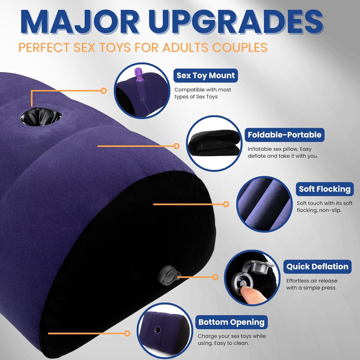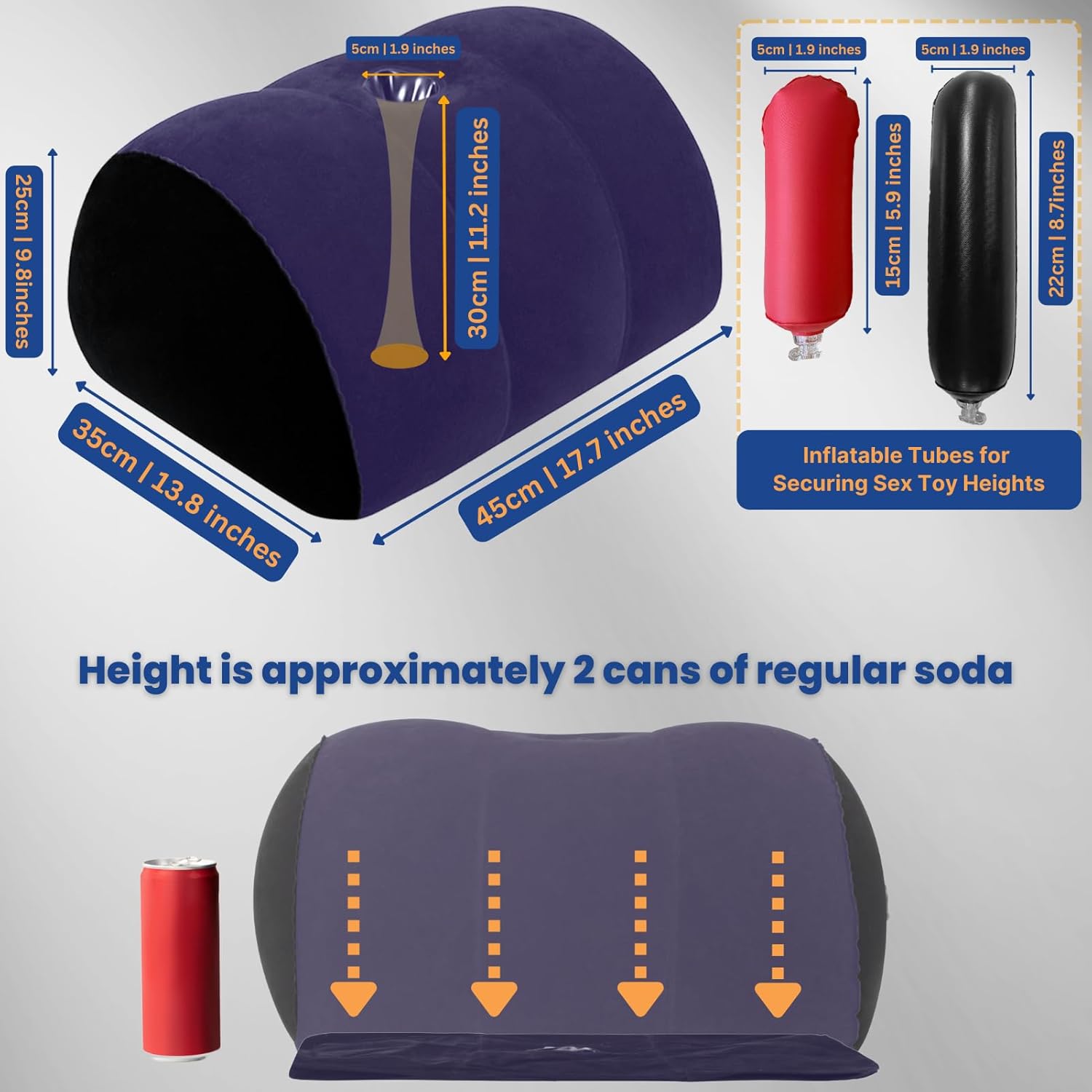 Compatible with Various Adult Toys – Featuring a deep cavity and inflatable tube support, this pillow securely holds different sizes of dildos and vibrators, allowing you to explore different positions with ease.