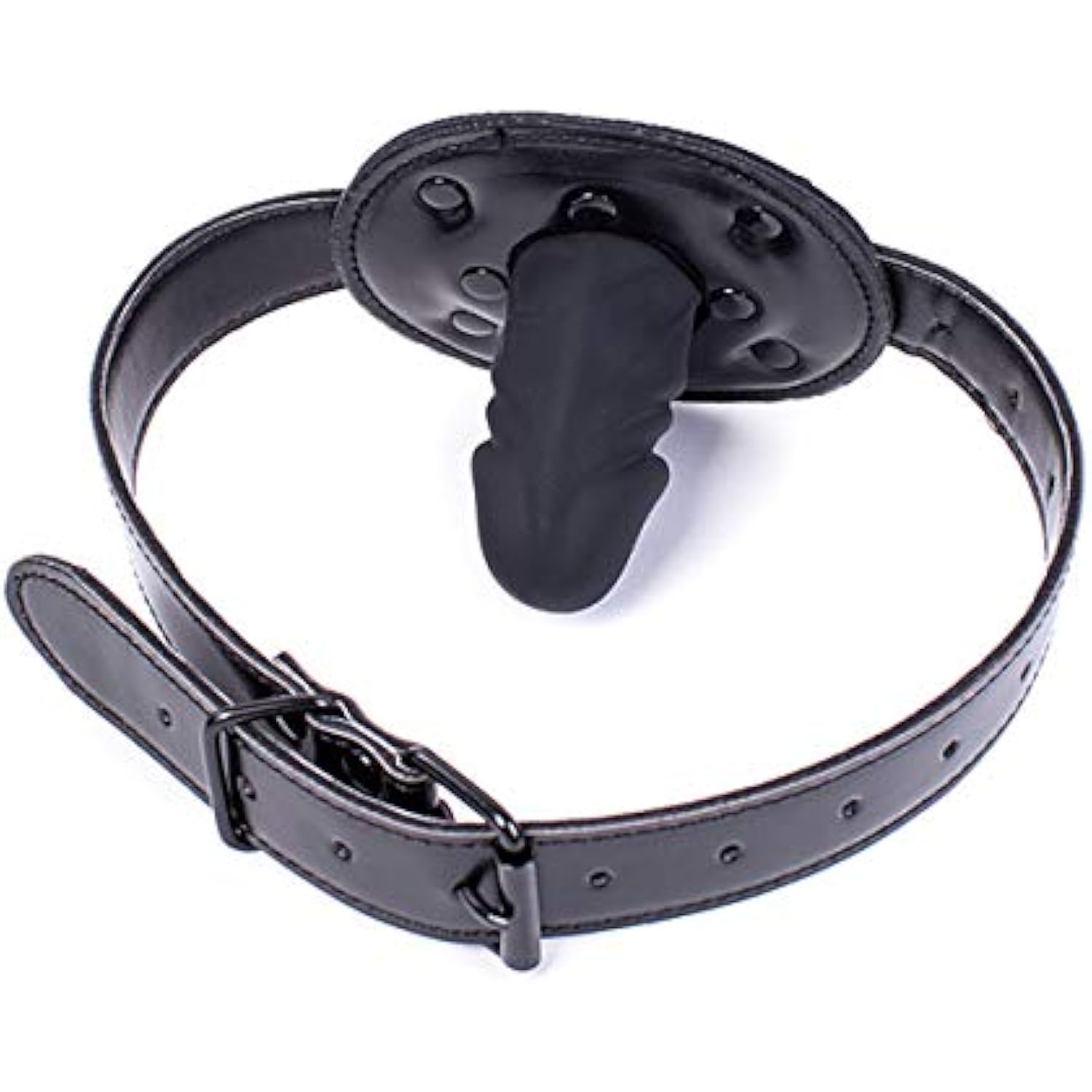 Dildo Mouth Gag Fetish Bondage Silicone Penis Restraint Leather Strap-On Muzzles Bdsm Adult Sex Toys (Penis Plug Length:2.3 Inch, Black Metal1)