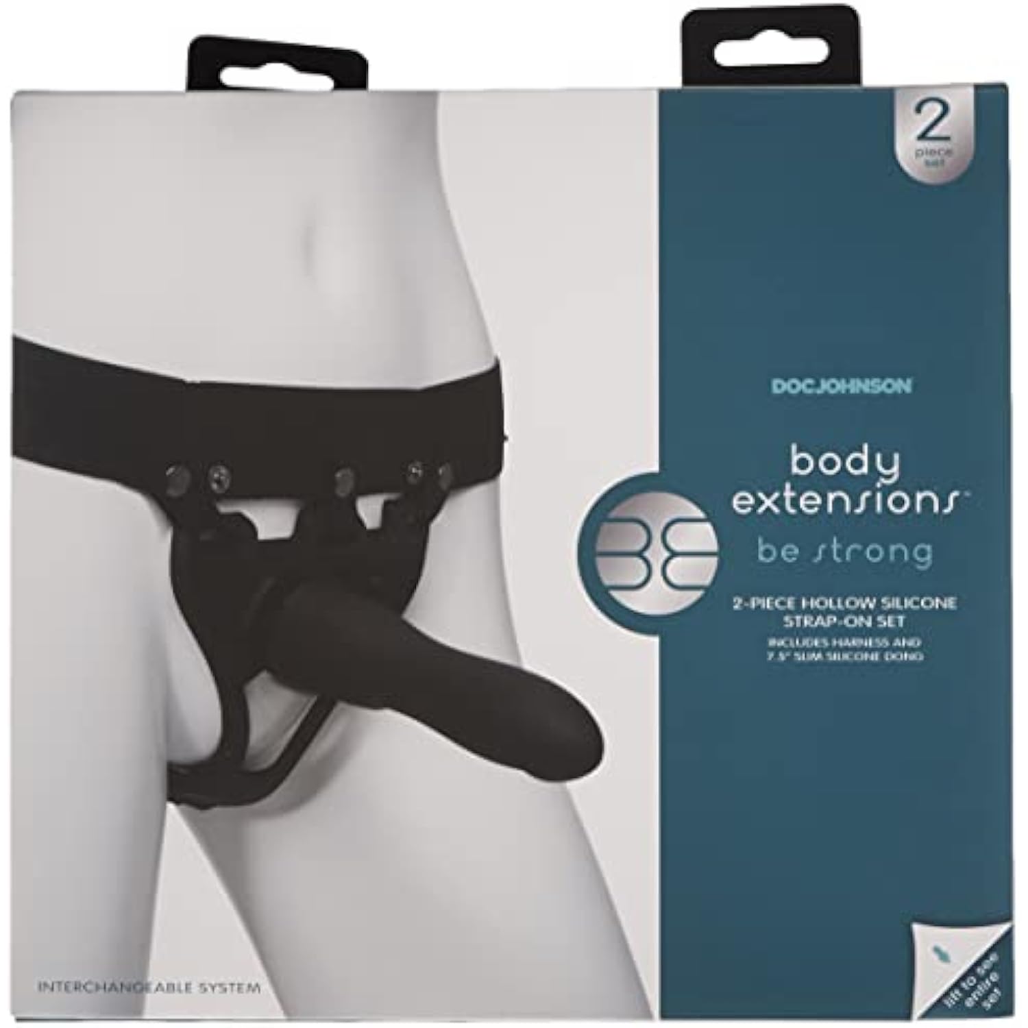 Doc Johnson Body Extensions - BE Strong - Hollow Strap-On System - Silicone Harness with Elastic Waist Band and Slim Hollow Dildo