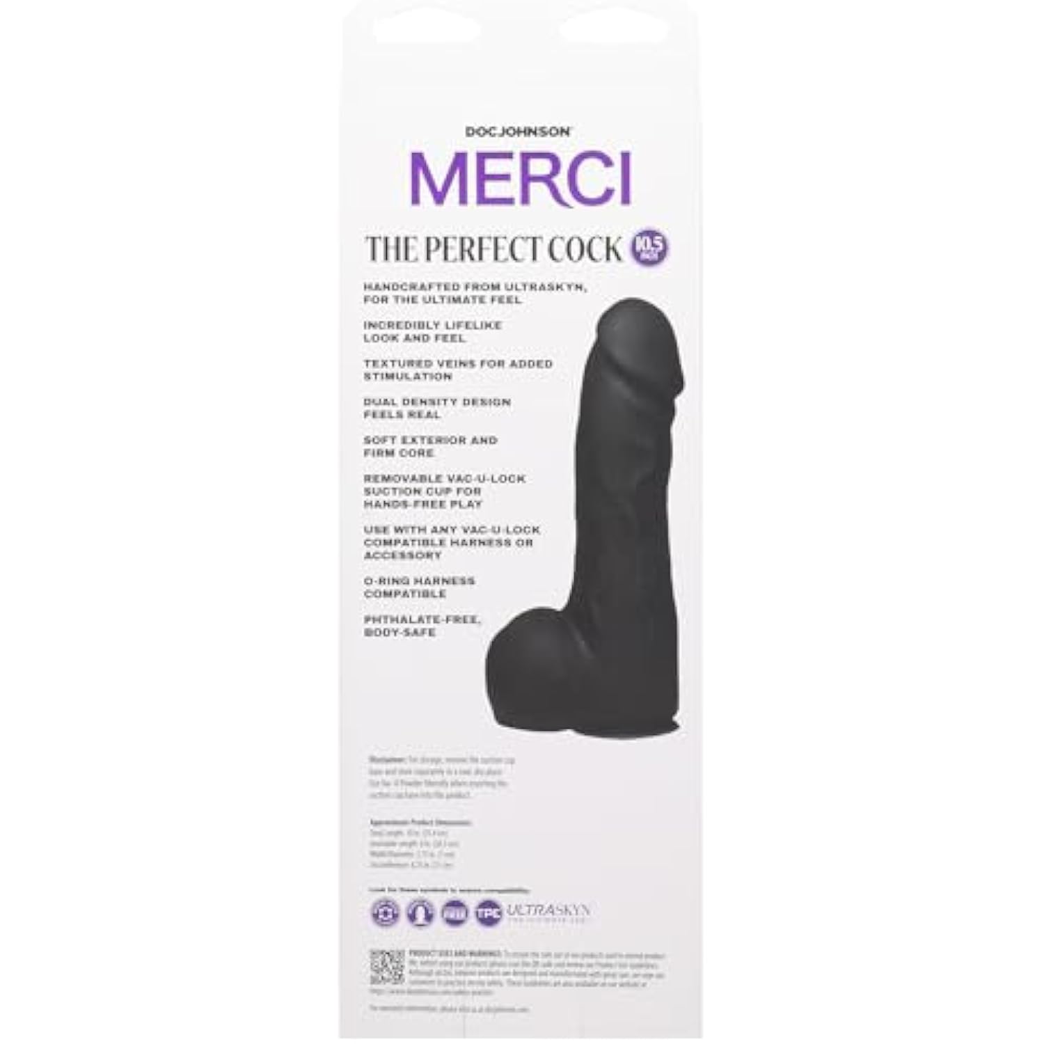 Doc Johnson Merci - The Perfect Dildo 10.5" - with Removable Vac-U-Lock Suction Cup - ULTRASKYN - for Adults Only, Black