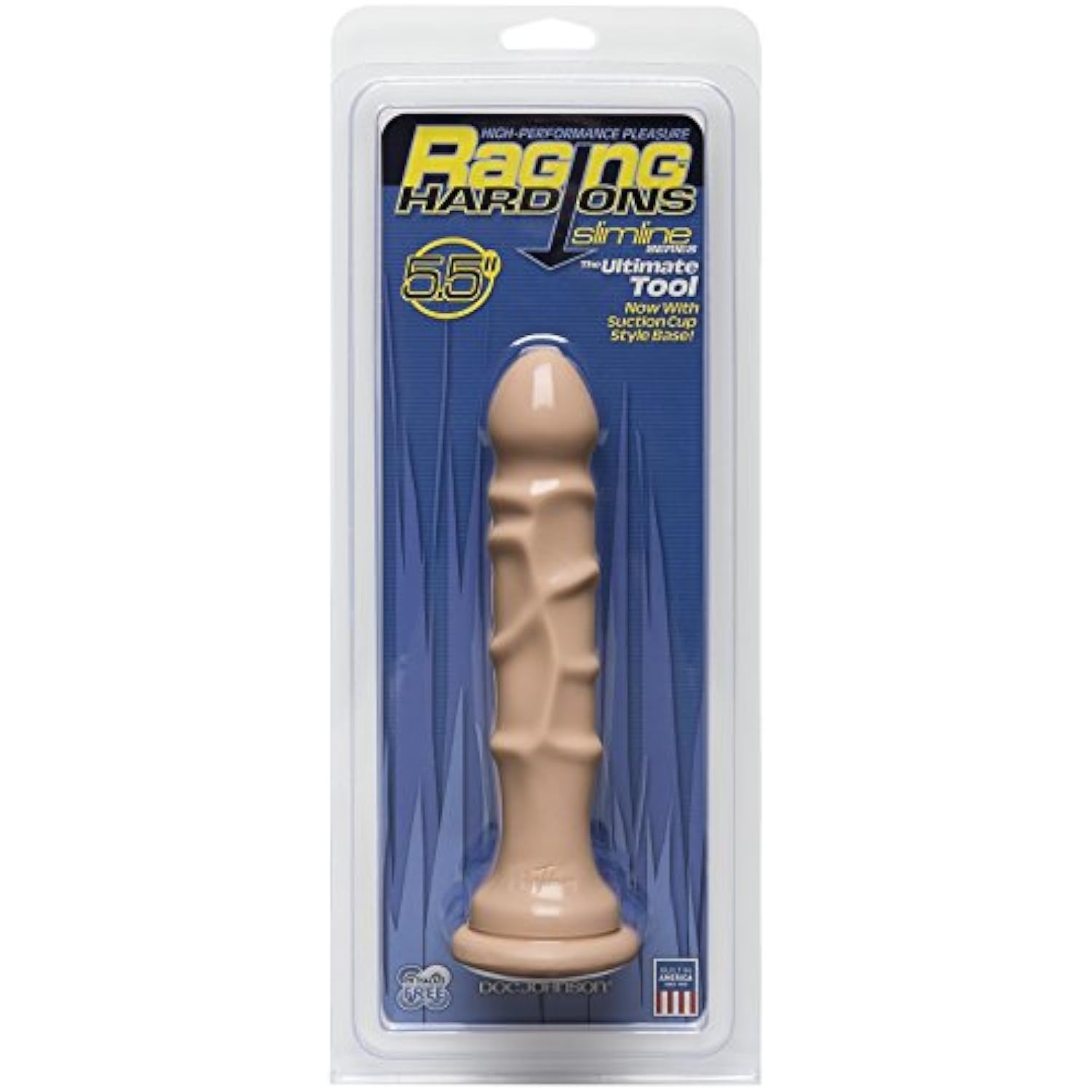 Doc Johnson Raging Hard-Ons - Slim Line - 5.5 Inch (6.9 in. Long and 1.2 in. Wide) - Heavily Veined - Dildo with Suction Cup Base - Great For Anal Beginners - Vanilla
