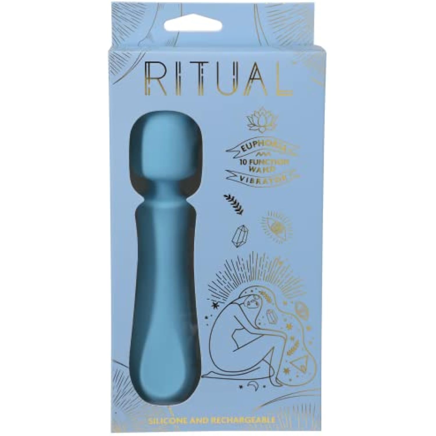 Doc Johnson Ritual - Euphoria - 10 Function Wand Vibrator - Silicone and Rechargeable - Discreet, Blue