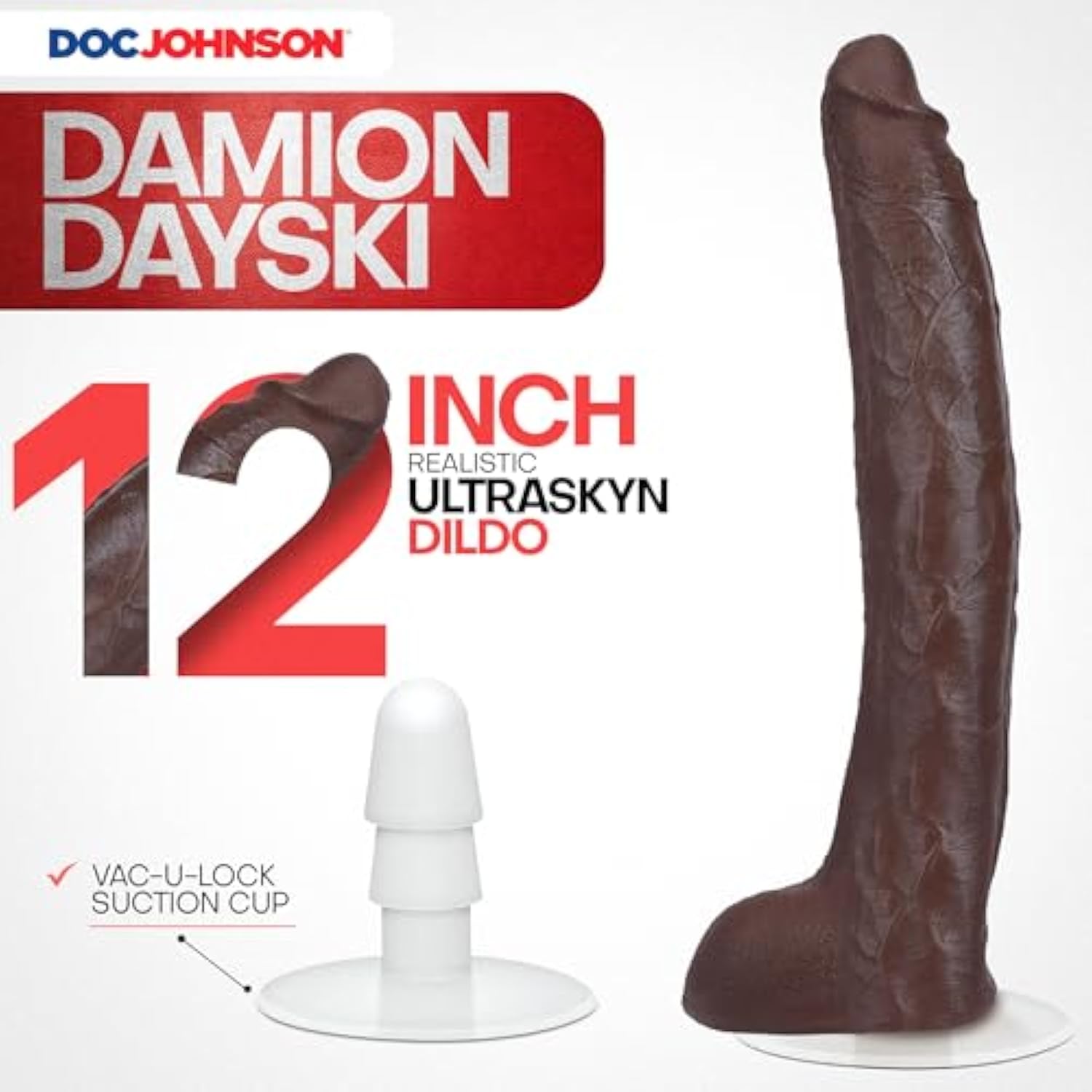 Doc Johnson Signature Series - Damion Dayski - 12 Inch ULTRASKYN Dildo with Removable Vac-U-Lock Suction Cup - F-Machine & Harness Compatible - for Adults Only, Chocolate