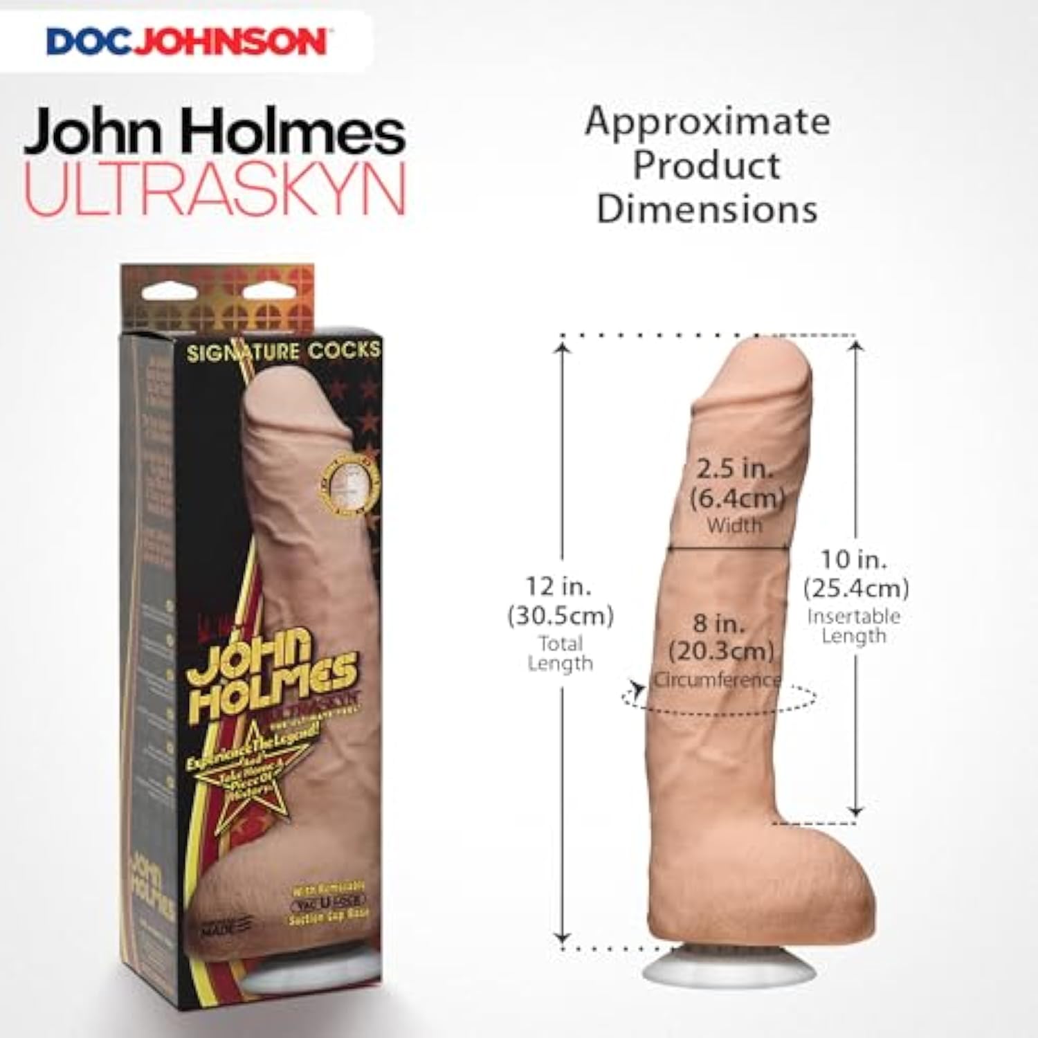 Doc Johnson Signature Series - The Legendary John Holmes - 12 Inch Realistic FIRMSKYN Dildo with Removeable Vac-U-Lock Suction Cup - F-Machine & Harness Compatible - for Adults Only, Vanilla