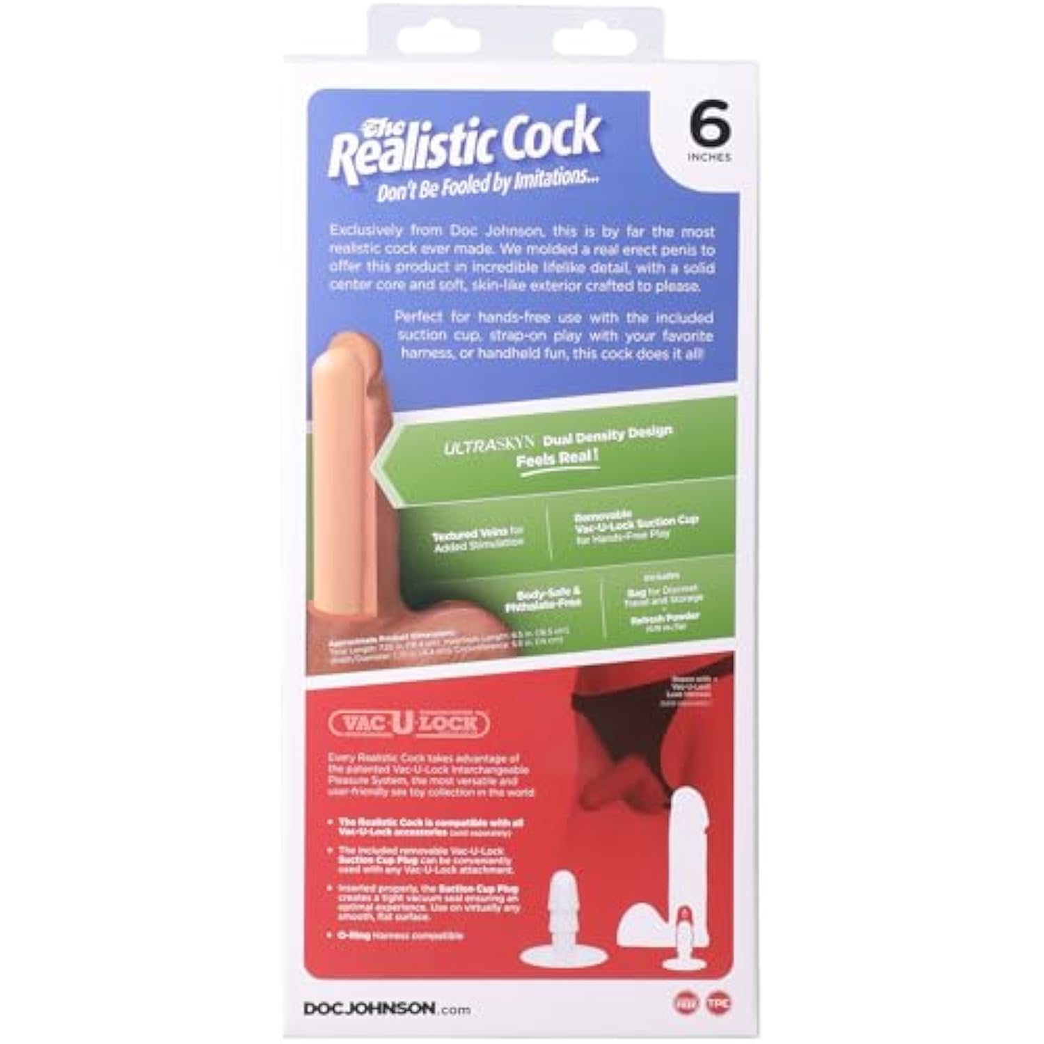 Doc Johnson The Realistic Cock with Removable Suction Cup - ULTRASKYN - 6 Inch - F-Machine and Harness Compatible Dildo - Vanilla