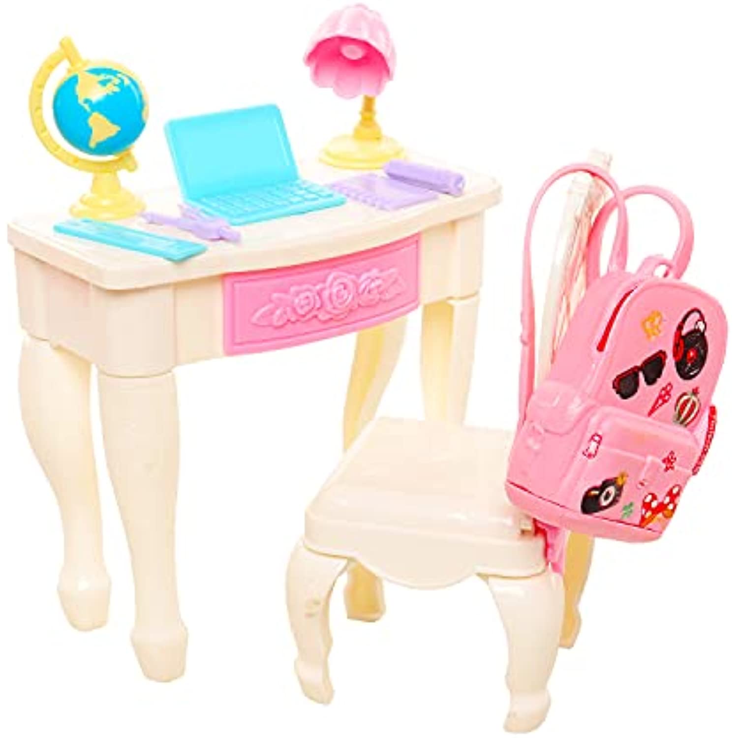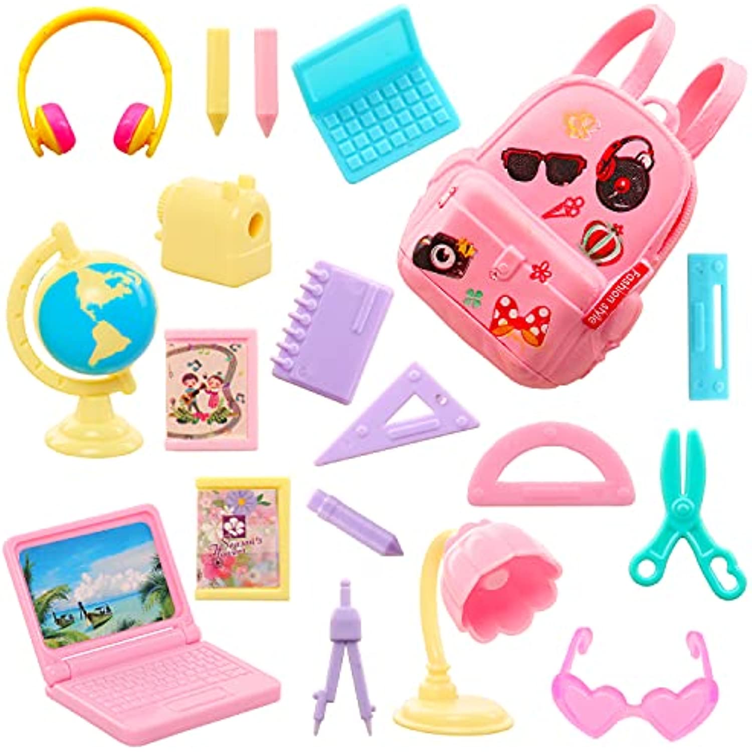 - Package Includes:Backpack*1(random), Headset*1, Glasses*1, Laptop*2, ruler*3, shear*1, pen*3, compasses*1,Pencil sharpener*1, book*2, tellurion*1,table lamp*1(NOT INCLUDE THE DOLL)