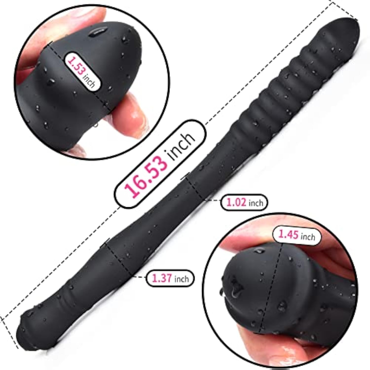 | 16.53 Inch Double Ended Dildo: 16.53 Inch Double Ended Dildos For You To Share With Your Partner. It'S Flexible Enough For Double Penetration Experiments. It Can Be Bent In Half Yet Firm Enough To Use For Partnered Play. | | Ribbed Dildo With Lifelike Glans: One End Of The Realistic Dildo Comes With Ribbed Texture And Lifelike Glans. The Ribbed Texture Will Give You More Stimulation During The Penetration While The Lifelike Glans Will Give You A Real Feeling. Substantial Width And Heavily Textured Shaft Make This Toy Perfect For Those That Want A Satisfying Fullness Deep Inside. | | Smooth Dong With Unique Head: The Other End Of This Dong Comes With Unique Shaped Head Which Will Give You A Different Feeling. Once It "Pops" In It'S Amazing. This End Of The Dong Is Silky Smooth, Easy To Push In. | | Body Safe Silicone Material: This Prostate Massagers Is Made From 100% Body Safe Silicone, An Anal-Friendly Material That’S Non-Porous, Phthalate-Free. You Will Love The Silky Silicone Touch Which Takes Lubricant Nicely. They Are Super Easy To Clean Since They Are Non-Porous. | | Discreet Package: The Sex Toy Will Be Neatly Packaged In A Discreet Package. No Sensitive Words Will Appear On The Packaging. Please Feel Free To