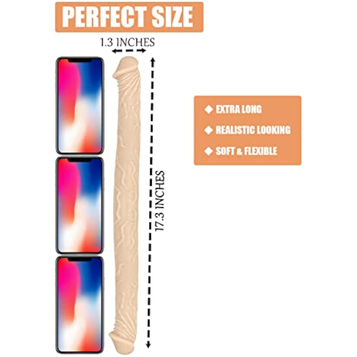 Double Ended Dildo, 17 in Super Long Double Dong, Flexible Realistic Double-Sided Dildo Penis, Sex Toys for Couple Men Women Lesbian Gay Play/Skin Tones