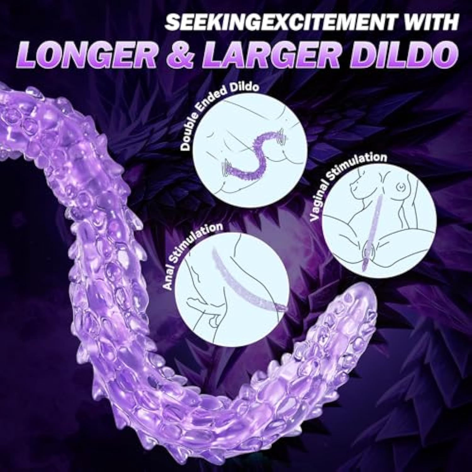 Double Ended Dildo Anal Dildo, 23.2” Long Dildo With Clear Purple Flexbile Big Dildos, Monster Double Sided Dildos & Large Anal Plug, Adult Sex Toy Lesbian Couples Gay Women Clitoral Stimulator