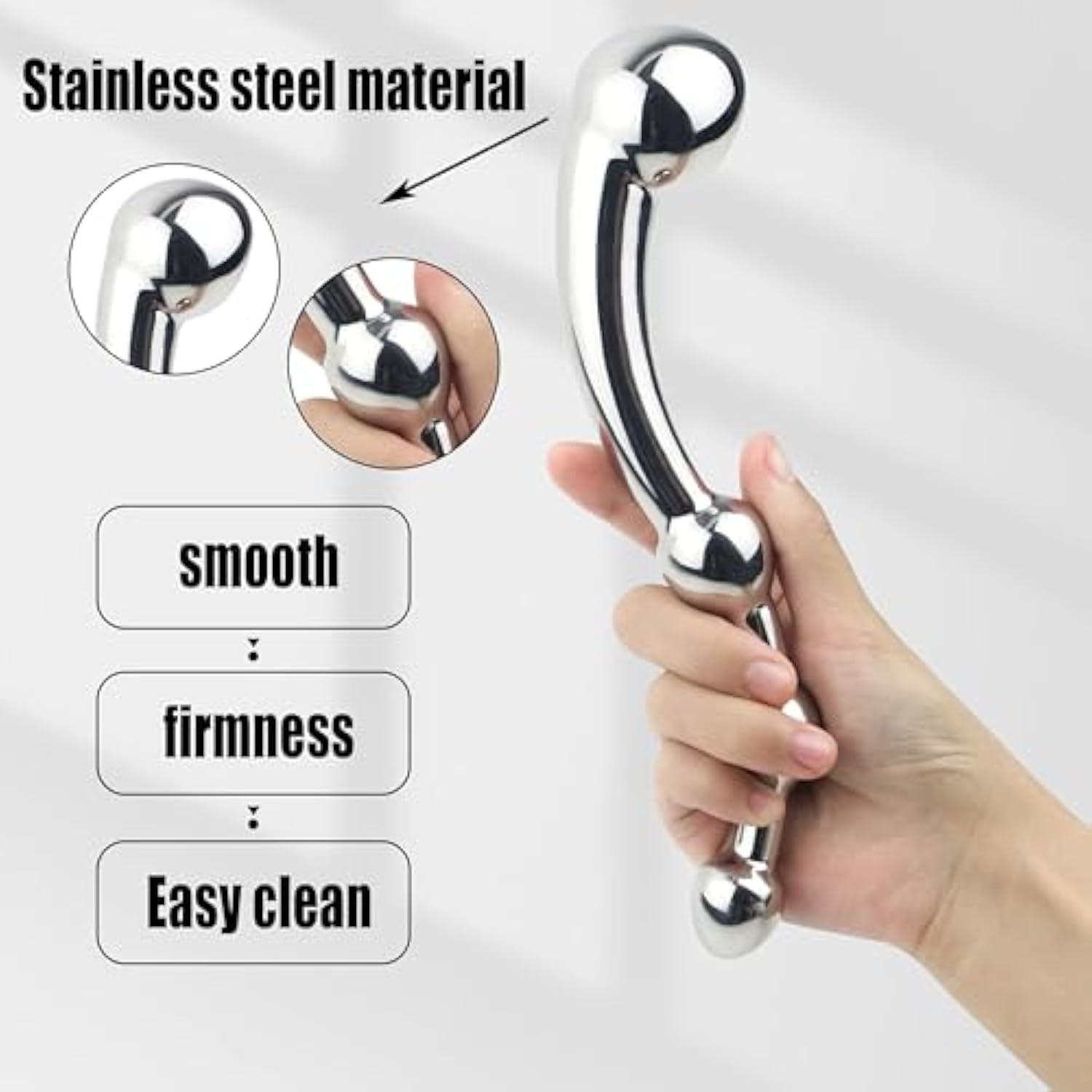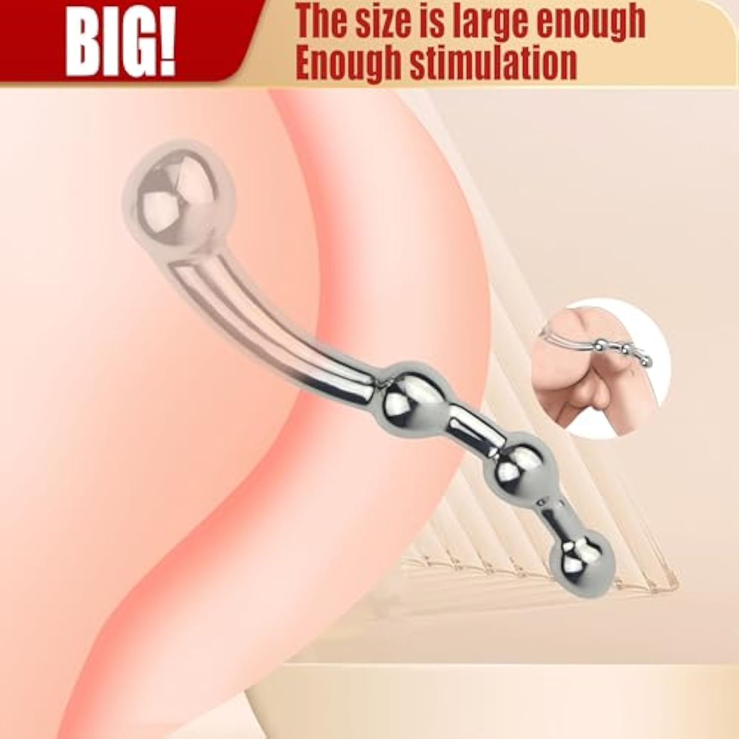 Double Ended Thrusting Stainless Steel Anal Beads, Female G-Spot Stimulation Anal Plug Massage Masturbation, Stainless Steel Waterproof Fake Dildo (S-Shaped Anal Dildo)