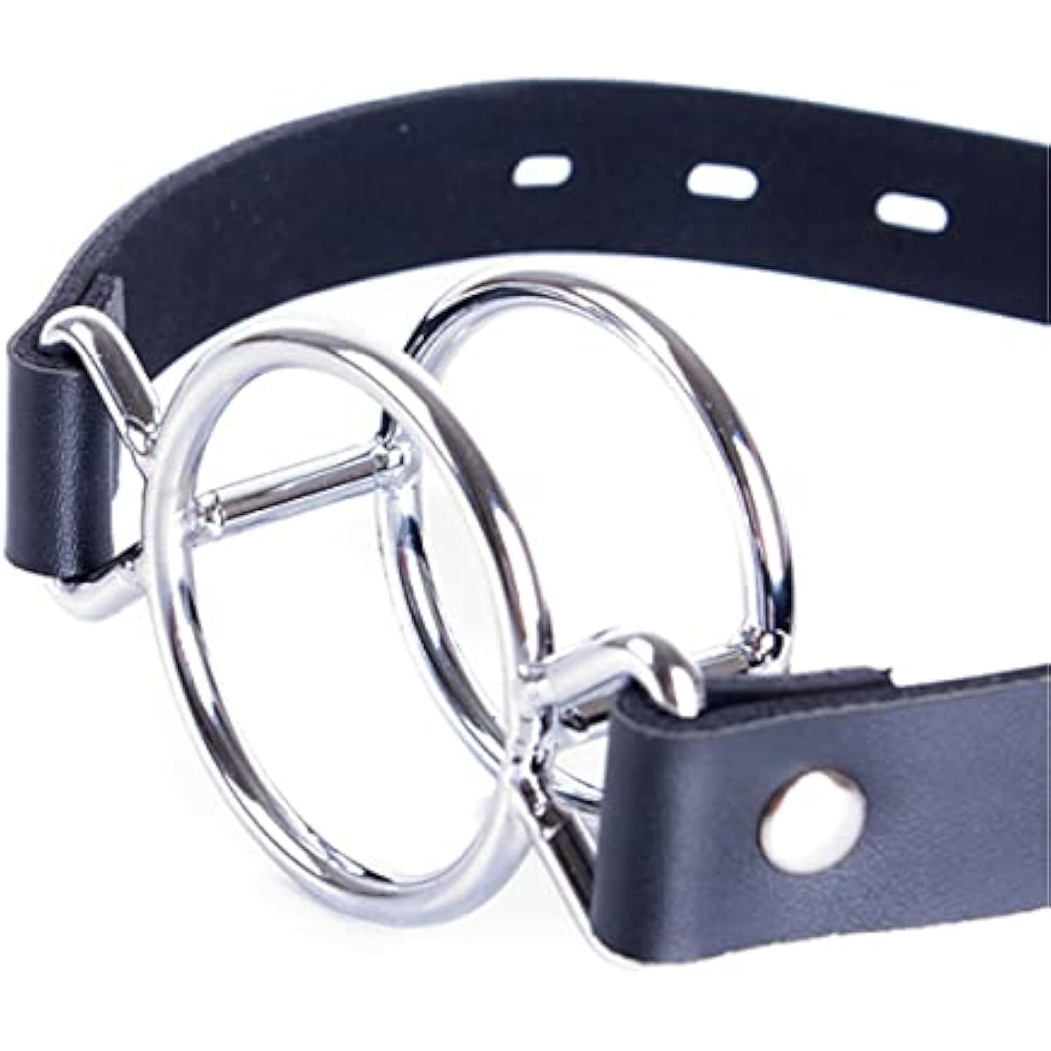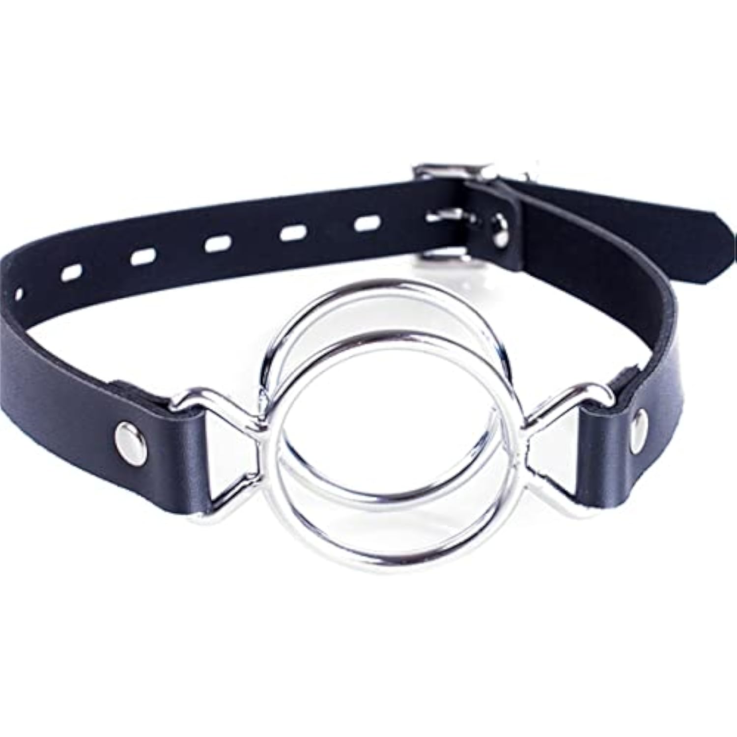Double Metal Ring Gag Leather Head Harness Restraint Mouth Gags Sex Toys For Couples (Silver)