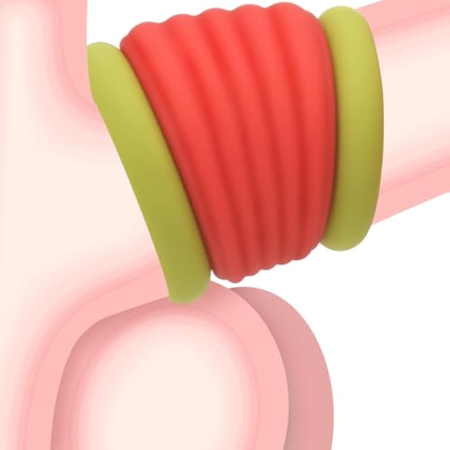 Double Penis Ring For Men - Green + Red Silicone Cock Ring For Harder Longer Stronger Erections - Erection Enhancing Sex Toy