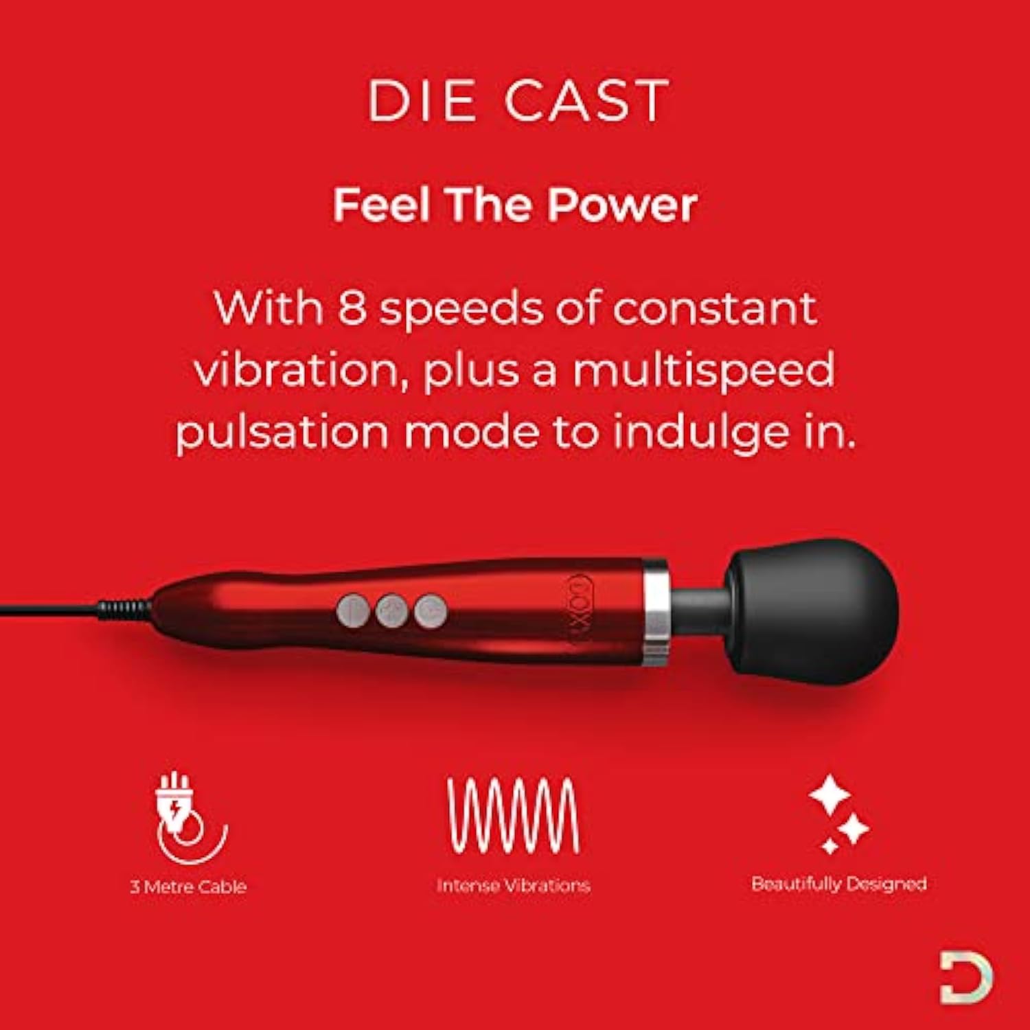 DOXY Die Cast Plug in Personal Wand Massager - Red Luxurious Adult Toys Couples Vibrator - Personal Vibrator - Body-Safe Sexual Pleasure Tools for Women - World's Most Powerful Deep Tissue Massager