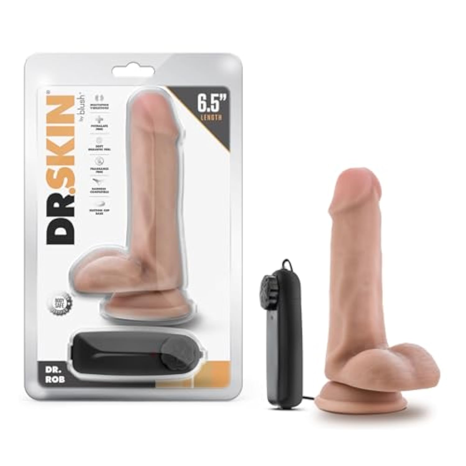 Dr. Skin Dr. Rob - 6.5 Inch Lifelike Realistic Multi Speed Vibrating Slim Dildo - Harness Suction Cup For Hands Free Play - Remote Controlled Vibrator Sex Toy For Women Men - Vanilla
