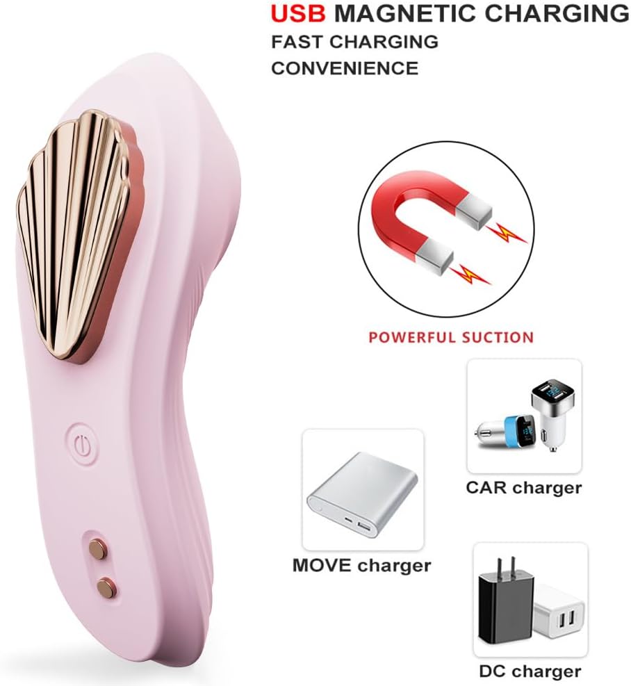 This wearable panty vibrator features a secure magnetic clip that attaches to the outer layer of underwear, keeping the device in place for comfortable all-day wear without slipping. Designed for women, its mini C-shaped stimulator fits all sizes of underwear and includes durable rechargeable batteries for extended use.