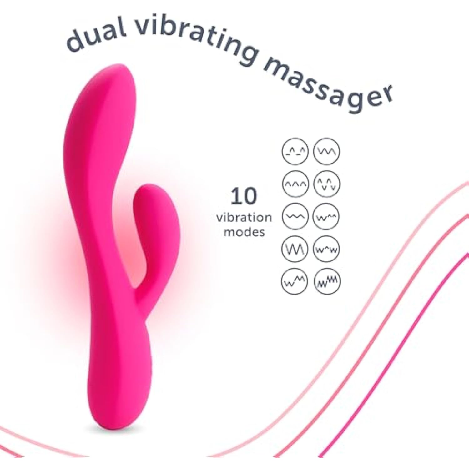 Dual Rabbit Vibrator Personal Massager, 10 Vibration Settings, Body-Safe Silicone, Waterproof, Usb Rechargeable, For Women And Men