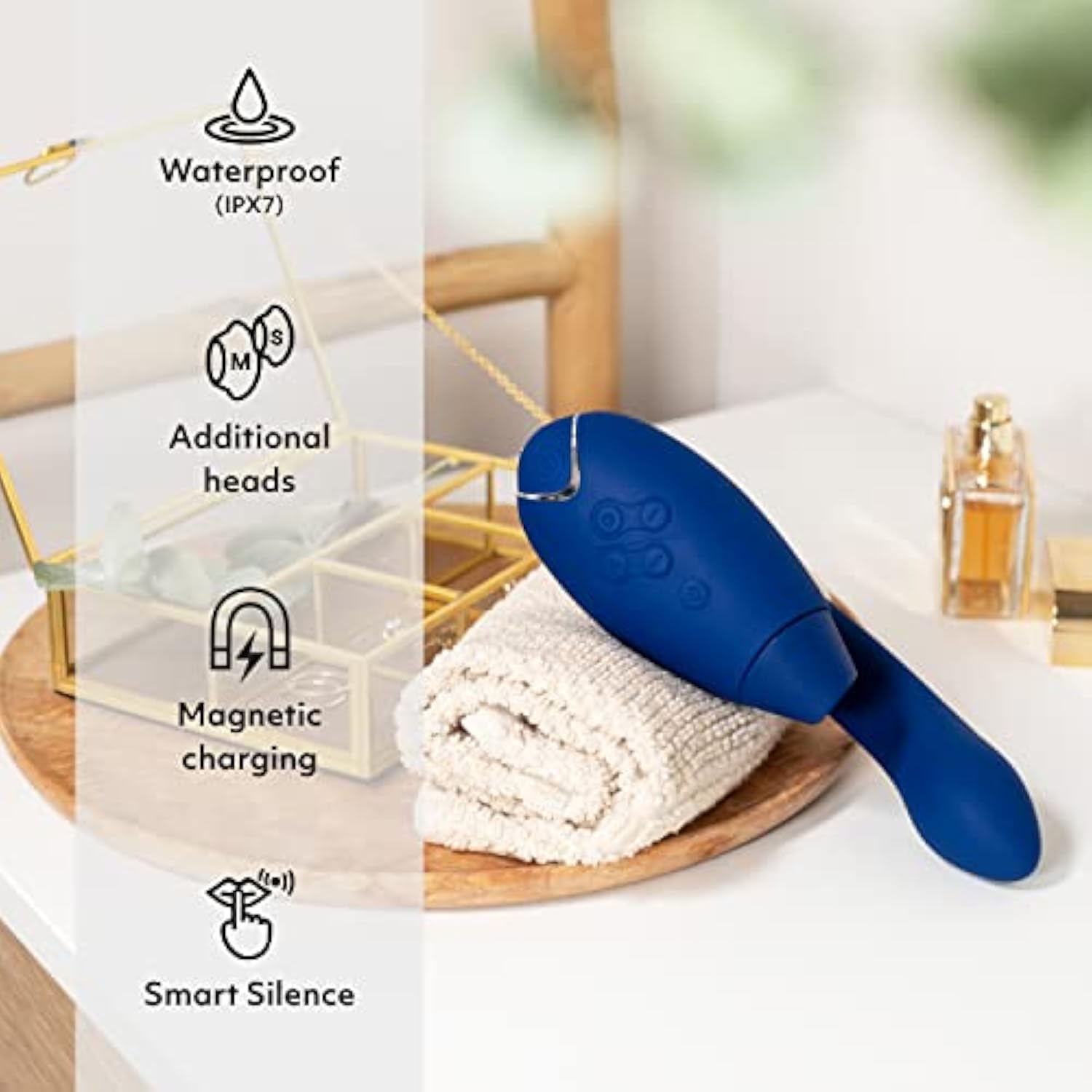 | Bundle Includes: Duo 2 Blue Rabbit Vibrator And Romp Pleasure Kit With A Wand Vibrator, Vibrating Penis Ring And Clit Sucker | | Double Pleasure: Duo 2 Simultaneously Targets The G-Spot With Vibrations And The Clitoris With Suction-Like Pleasure Air Stimulation, Creating A Deeply Satisfying Blended Orgasm. The External And Internal Stimulation Can Also Be Controlled Separately So You Can Vary Your Experience. | | Triple Threat: Romp Pleasure Kit Contains Clitoral Suction Toy Romp Free, Powerful Wand Massager Romp Flip Vibrating Cock Ring Romp Juke, All In A Neat Travel Bag. Take Pleasure With You Wherever You Go – It'S Always Good To Have A Thirst Aid Kit | | Something In The Air: Pleasure Air Technology Is ’S Original Development, A Game-Changer In Clitoral Stimulation. Using Gentle Yet Intense Waves Of Suction-Like Air Pressure, Duo 2 Thrills The Clitoris Like No Other Toy. | | Slippery When Wet: All Toys Are Ipx7 Waterproof, So You Can Get Wet Wild In The Bath Or Shower Safely And Simply. This Also Makes The Toys Super Easy To Clean | |