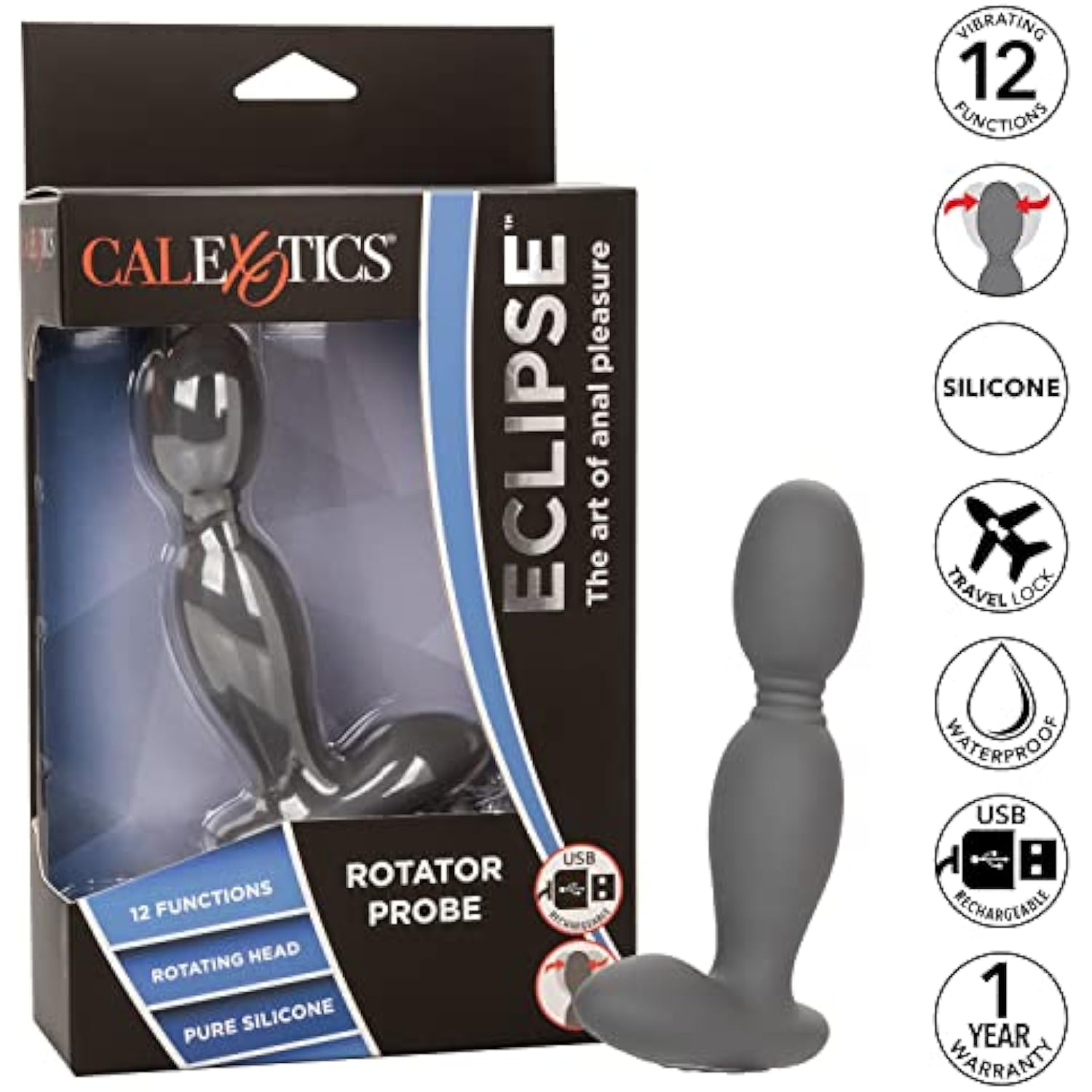 Eclipse Rotator Probe – Premium Rechargeable Silicone Anal Vibrator Adult Sex Toy – Black