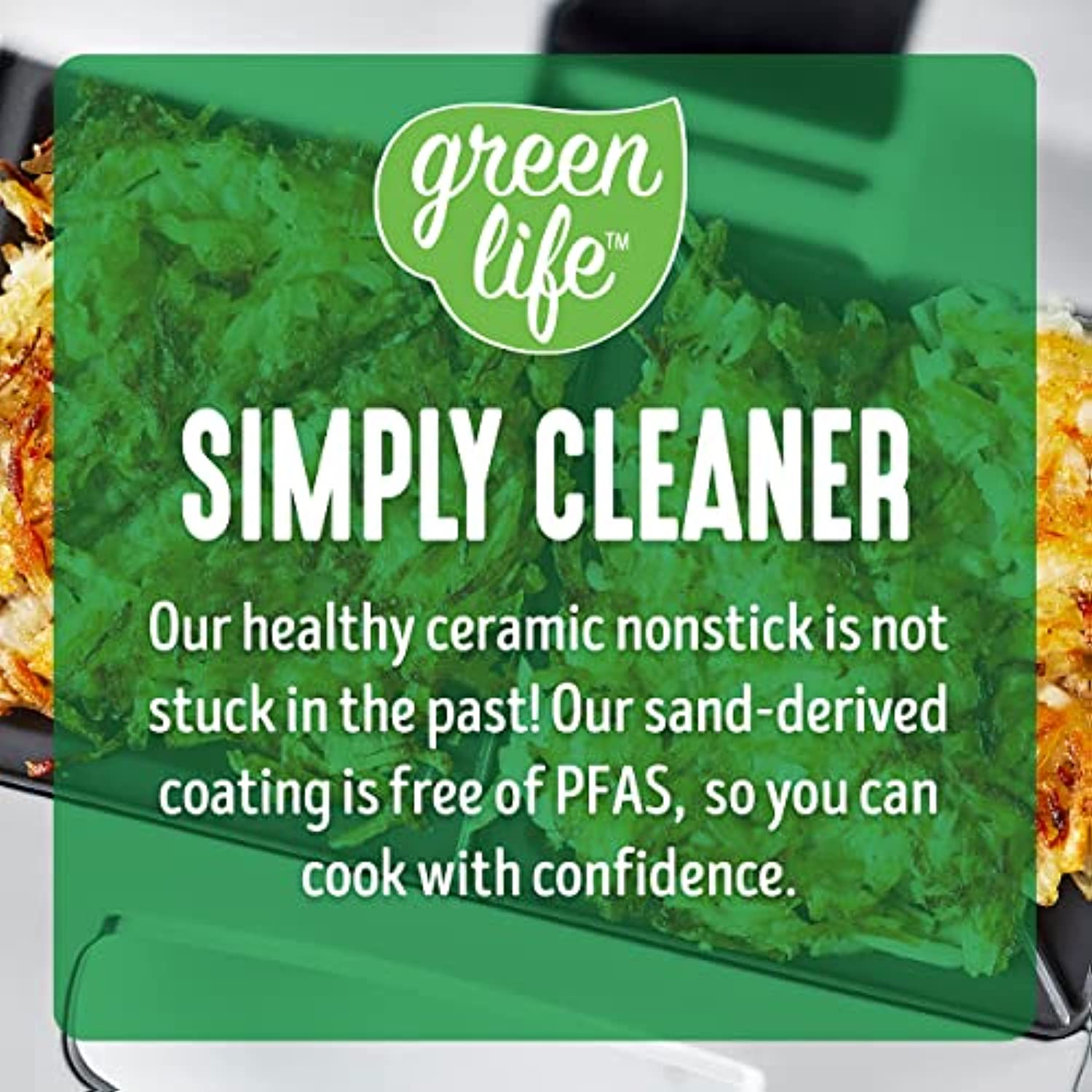 - Our easy-to-clean ceramic nonstick coating is derived from sand and free of PFAS, PFOA, lead, and cadmium for effortless release and quick cleanup