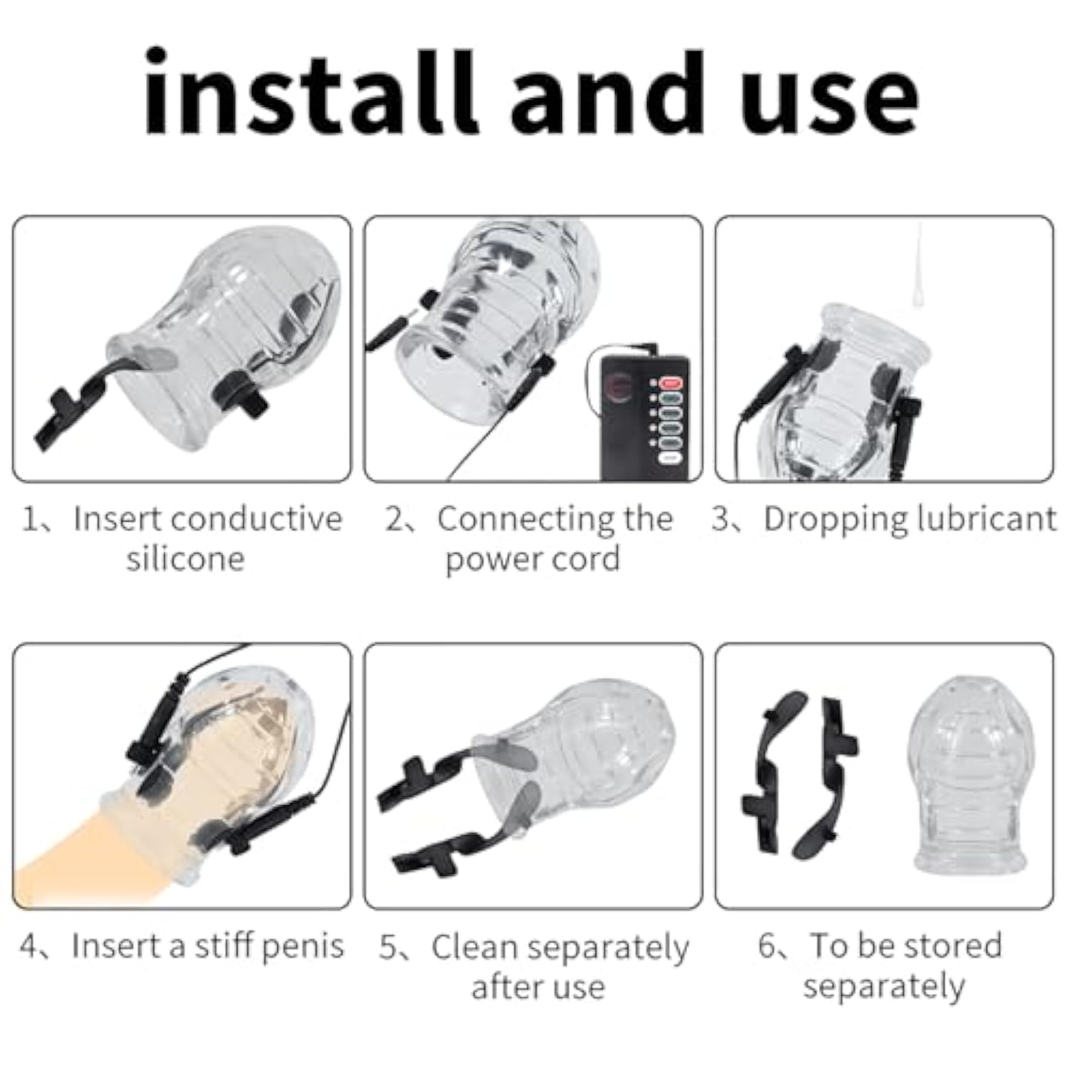 | The Electric Shock Chastity Cage Provides 4 Electric Shock Intensity Levels, And Users Can Adjust It Precisely According To Their Needs And Easily Choose The Electric Shock Intensity That Suits Them. | | Manually Adjust The Current Intensity. Users Can Adjust It According To Their Needs, Accurately Control The Shock Intensity Of The Electric Shock Penis Cage, And Easily Select The Appropriate Current Setting. | | The Cock Cage Is Made Of Silicone, Which Is Soft And Smooth, Delicate To The Touch, Easy To Clean, And Ensures Stability And Hygiene During Use. | | The Penis Cage Is Equipped With A Usb Charging Function, Which Can Be Used Continuously After Being Fully Charged. The Silicone Anal Plug Is Easy To Clean And Maintain. | | Discreet Packaging And Satisfactory After-Sales Service You Can