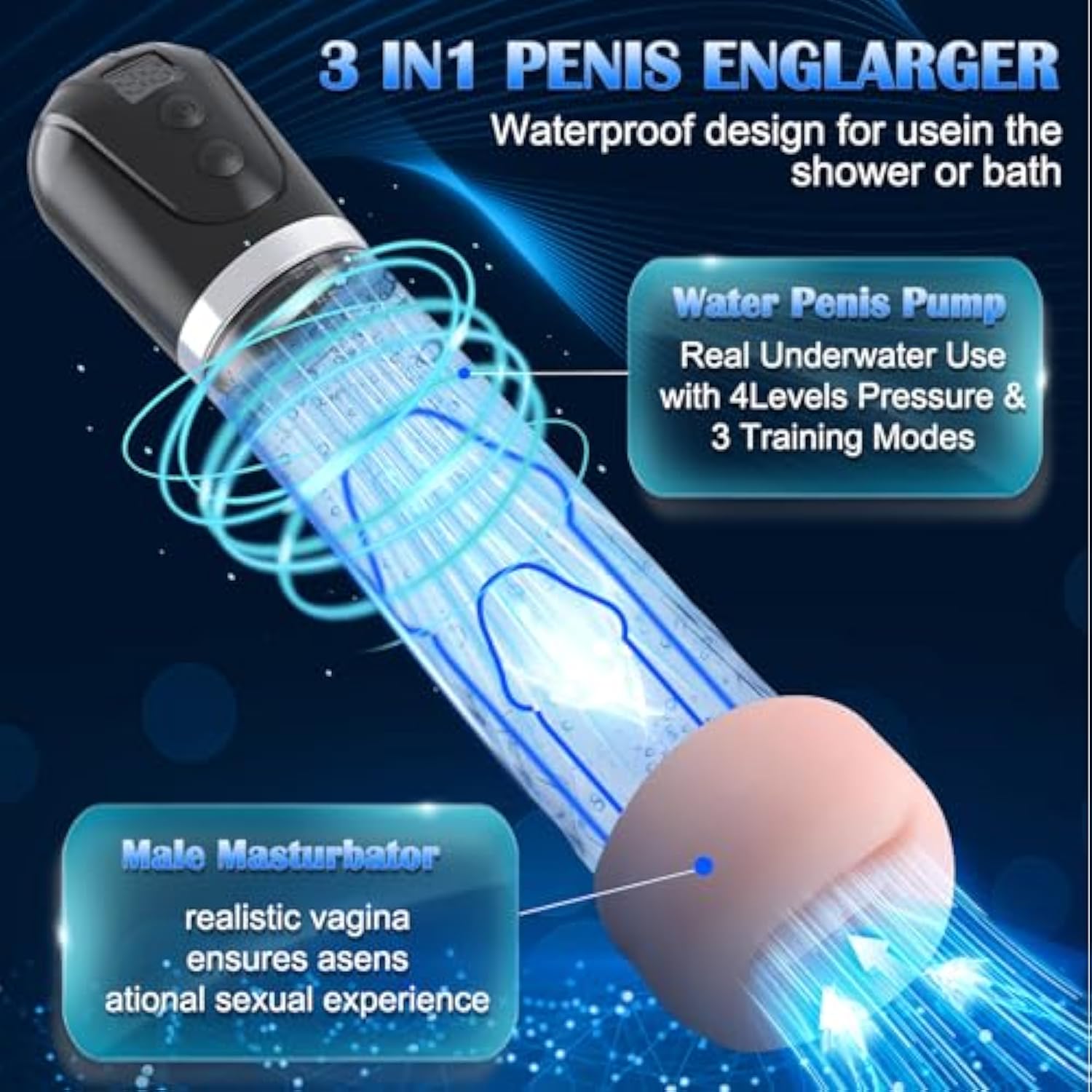 Electric Vacuum Penis Pump - Cock Enlarger With Pocket Vagina & 4 Suction Intensities, High-Vacuum Air Pressure Penis Enlargement Extend Pump For Men Bigger Stronger Harder Erection