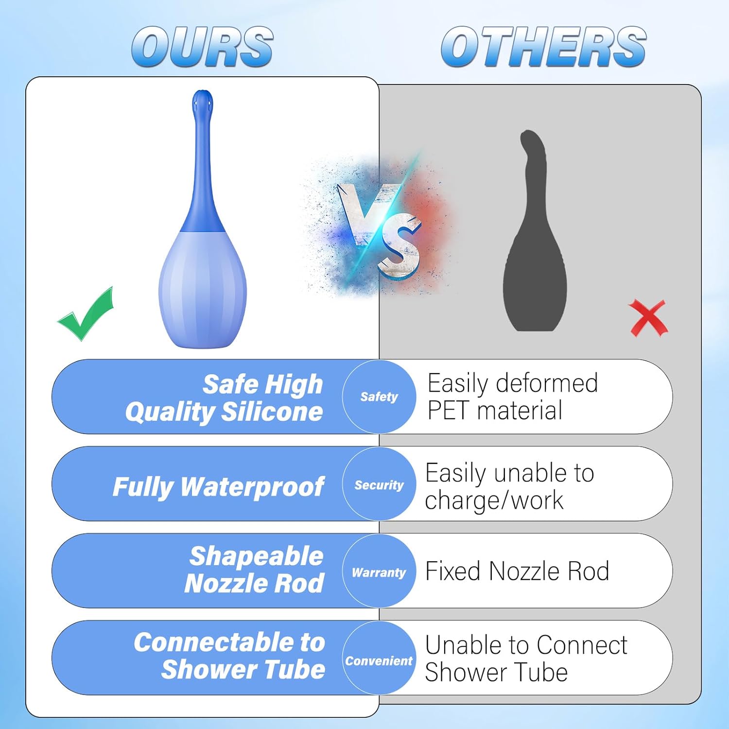 Enema Douche Kit with Bendable Silicone Nozzle & Anti-Backflow Design for Cleansing