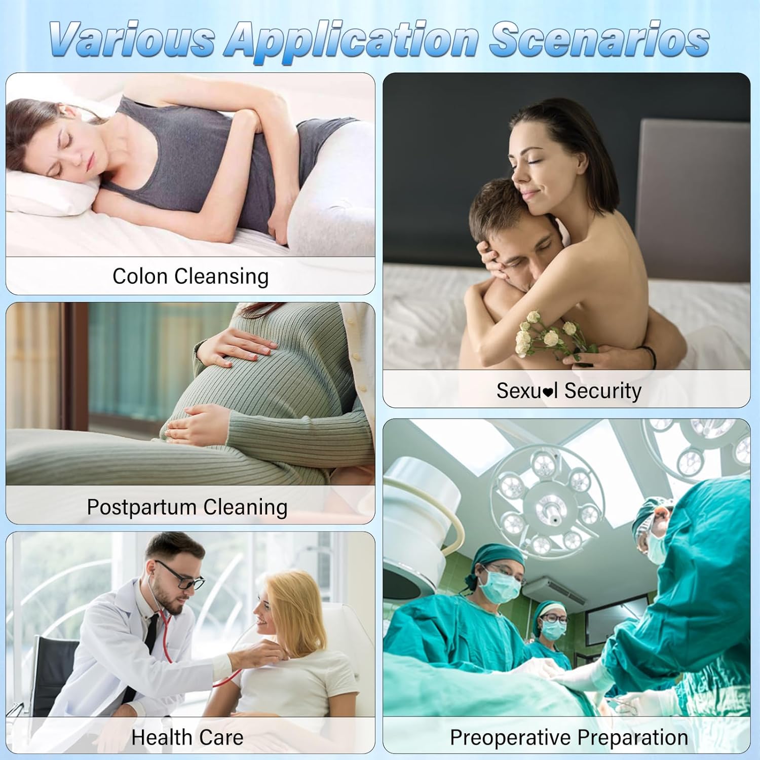 Compatible with most shower hoses, this enema kit ensures effortless cleansing with unlimited water flow. The bendable nozzle adjusts to any angle for precise perineal or internal cleaning. Featuring five spray openings for 360° thorough cleansing, it provides maximum comfort and effectiveness. Designed with an anti-backflow system and a built-in water purification valve, it ensures hygiene and safety. Made from medical-grade silicone, it's skin-friendly, non-toxic, and easy to clean.