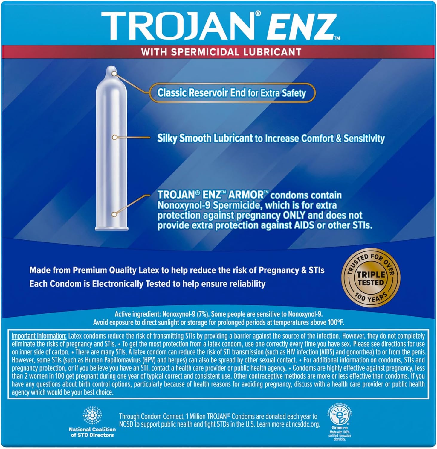 ENZ Armor Spermicidal Lubricated Condoms, Extra Protection, 36-Count