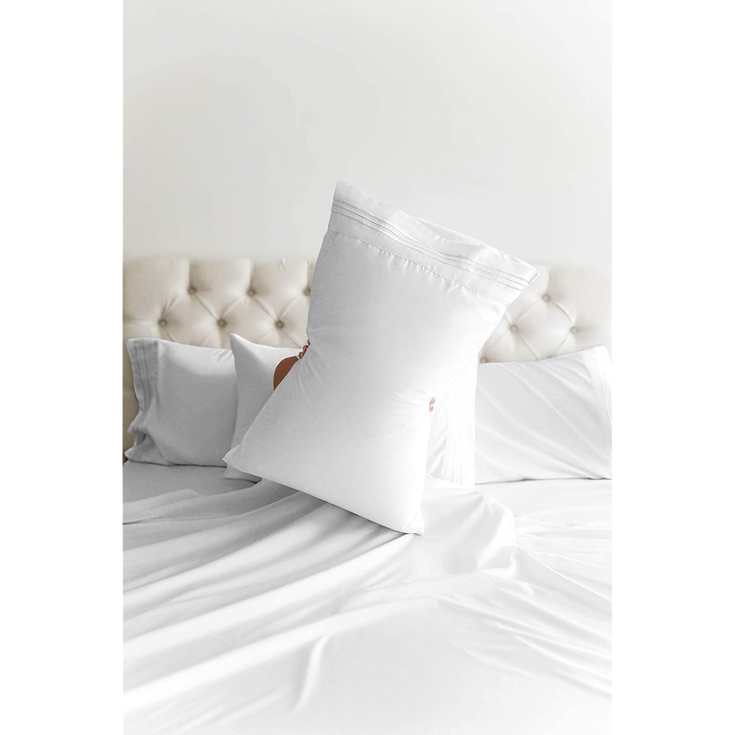 - Great For Double Pillow Top Mattress: These Bed Sheets Are Perfect For Mattresses With A 3 Inch Or 4 Inch Topper On Top, Memory Foam Toppers, Big Mattress Pads, Pillow Tops, Foam Toppers, Big Foam Toppers, Pillow Top Mattresses And Memory Foam. These Sheets Will Not Come Off!